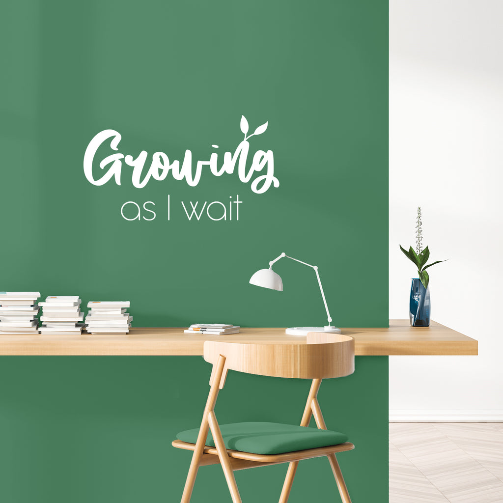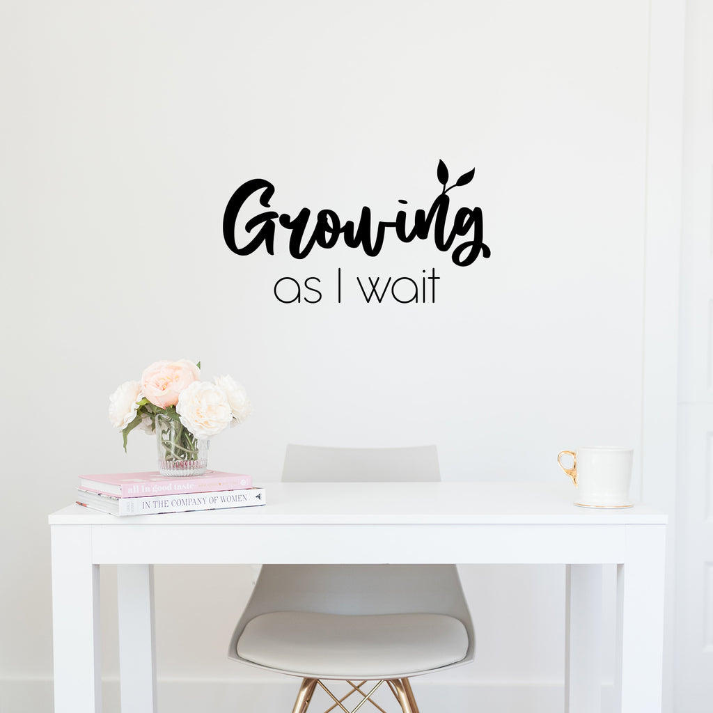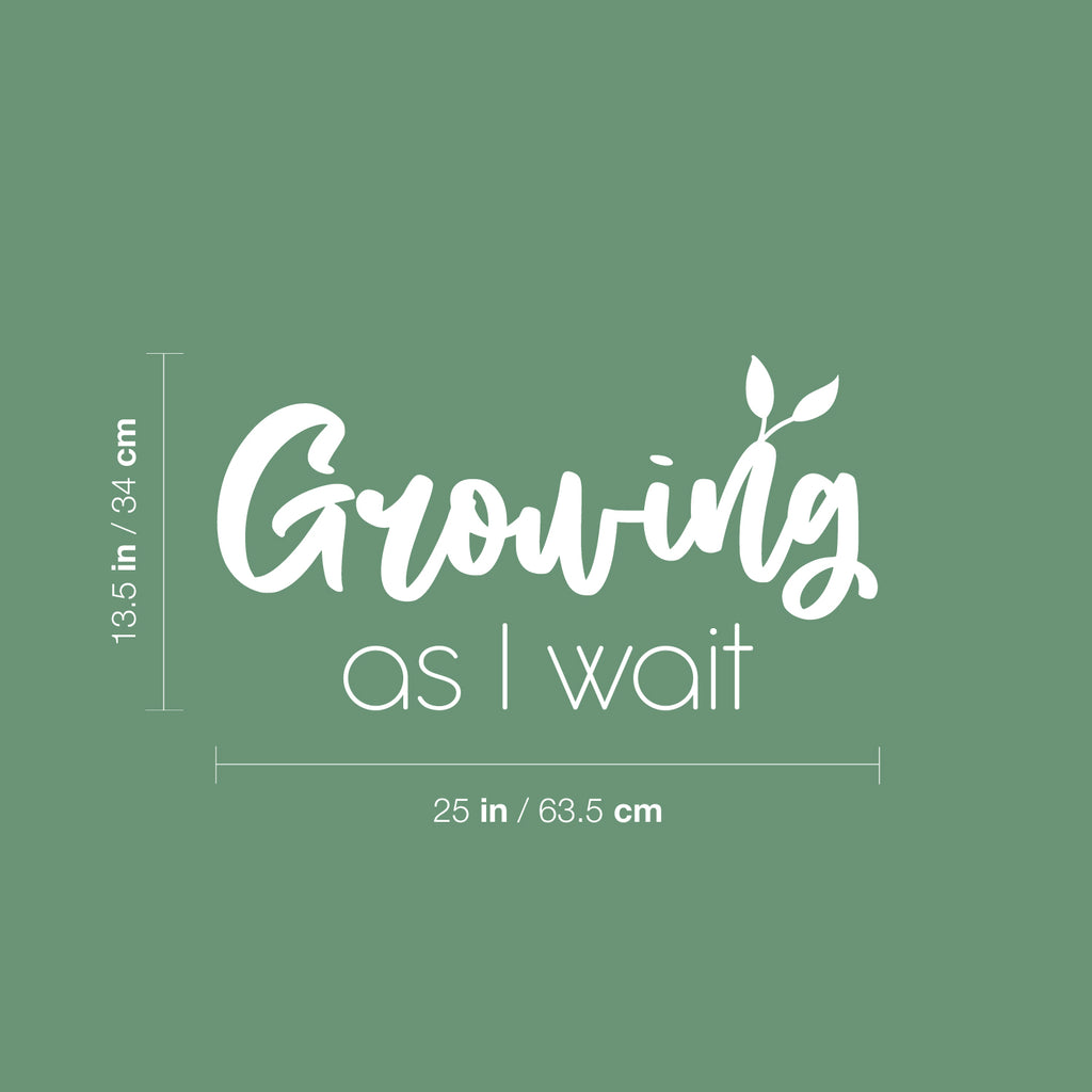 This awesome positive decal quote "Growing As I Wait"; is the perfect touch for your home or office. Use it for your playroom; kids room; classroom or anywhere you want to bring some extra positive decoration. It's a vinyl sticker that is easy to put on any smooth and dry surface. Our modern designs don't just brighten up the room; but brighten up the day. Using top of the line vinyl across all of our production allows us to be the leaders in quality and design.