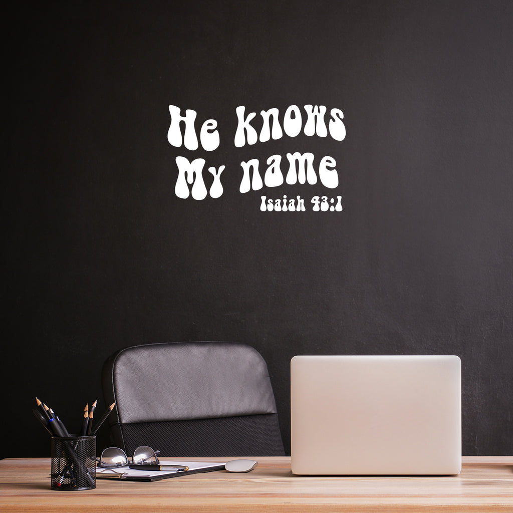 This decal quote "He Knows My Name Isaiah 43:1"; is the perfect touch for your home. Use it for your bedroom; office; church or anywhere you want to bring some extra religious decoration. It's a vinyl sticker that is easy to put on any smooth and dry surface. Our modern designs don't just brighten up the room; but brighten up the day. Using top of the line vinyl across all of our production allows us to be the leaders in quality and design.