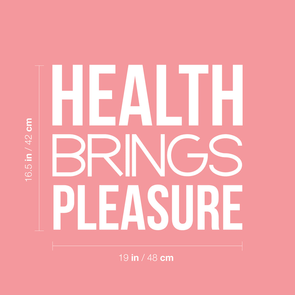 This awesome inspiring & positive decal quote "Health Brings Pleasure"; is the perfect touch for your fitness center or home. Use it for your nutrition center; business; office or anywhere you want to bring some extra positive decoration. It's a vinyl sticker that is easy to put on any smooth and dry surface. Our modern designs don't just brighten up the room; but brighten up the day. Using top of the line vinyl across all of our production allows us to be the leaders in quality and design.