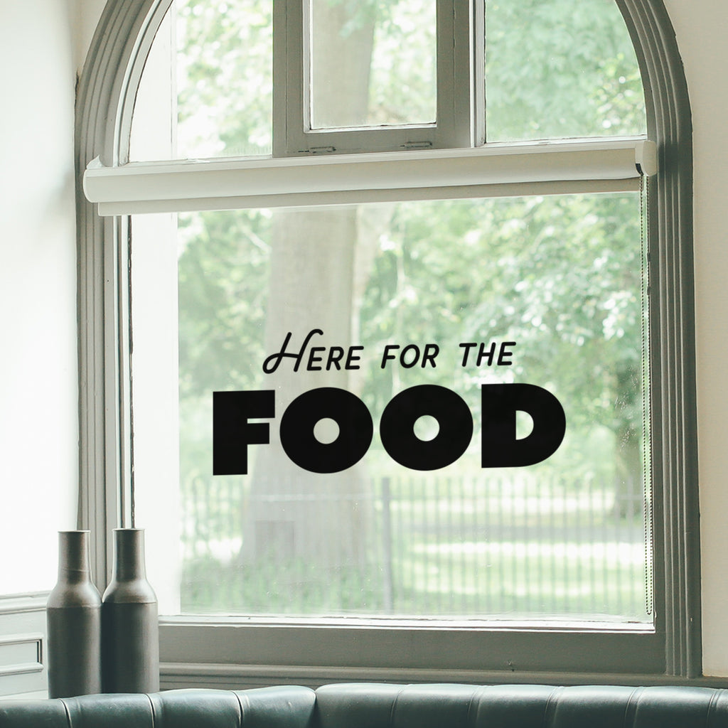 This decal quote "Here For The Food"; is the perfect touch for your home or shop. Use it for your dining room; kitchen or anywhere you want to bring some extra decoration. It's a vinyl sticker that is easy to put on any smooth and dry surface. Our modern designs don't just brighten up the room; but brighten up the day. Using top of the line vinyl across all of our production allows us to be the leaders in quality and design.