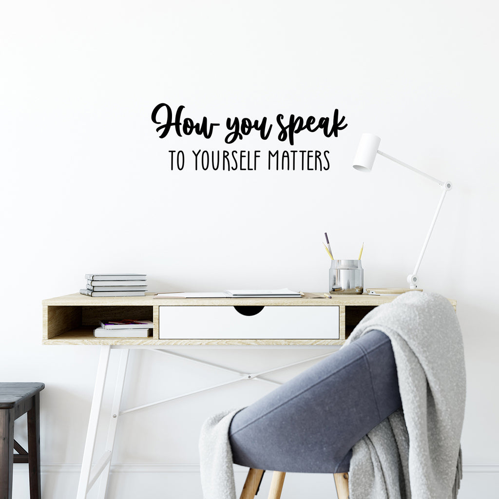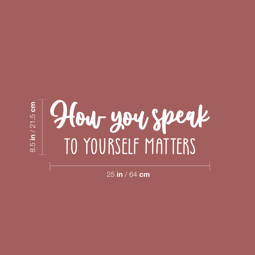 This awesome motivational & positive decal quote "How You Speak To Yourself Matters"; is the perfect touch for your home or office. Use it for your bedroom; closet; classroom or anywhere you want to bring some extra positive decoration. It's a vinyl sticker that is easy to put on any smooth and dry surface. Our modern designs don't just brighten up the room; but brighten up the day. Using top of the line vinyl across all of our production allows us to be the leaders in quality and design.
