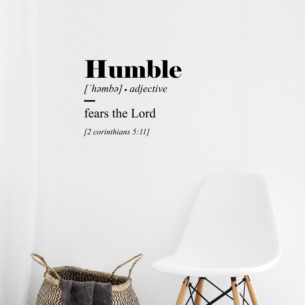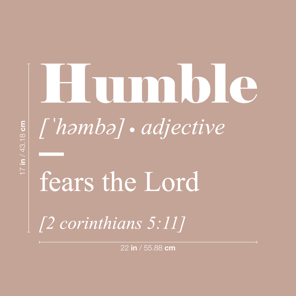 This awesome decal quote "Humble Fears The Lord - 2 Corinthians 5:11"; is the perfect touch for your home. Use it for your bedroom; office; church or anywhere you want to bring some extra religious decoration. It's a vinyl sticker that is easy to put on any smooth and dry surface. Our modern designs don't just brighten up the room; but brighten up the day. Using top of the line vinyl across all of our production allows us to be the leaders in quality and design.