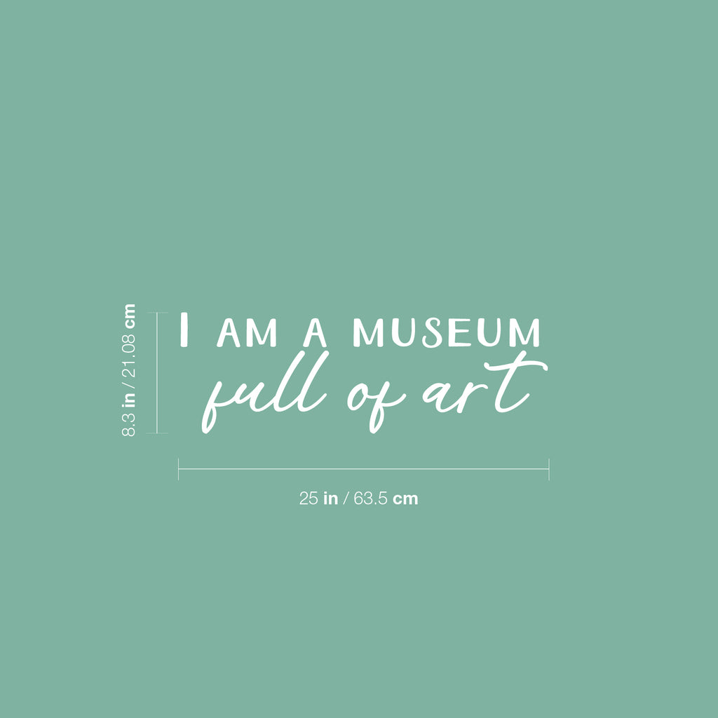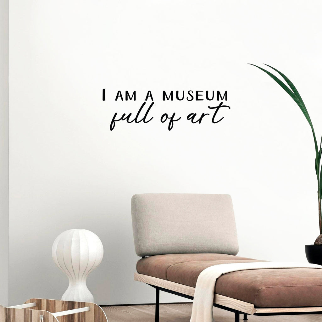 This great decal quote "I Am A Museum Full Of Art"; is the perfect touch for your home. Use it for your makeup area; dorm room or anywhere you want to bring some extra decoration. It's a vinyl sticker that is easy to put on any smooth and dry surface. Our modern designs don't just brighten up the room; but brighten up the day. Using top of the line vinyl across all of our production allows us to be the leaders in quality and design.