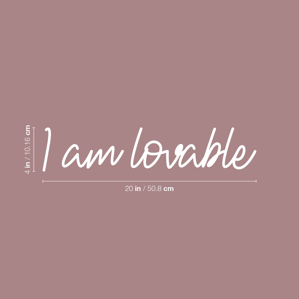 This positive decal quote "I Am Lovable"; is the perfect touch for your home or office. Use it for your bedroom; kids room; living room or anywhere you want to bring some extra positive decoration. It's a vinyl sticker that is easy to put on any smooth and dry surface. Our modern designs don't just brighten up the room; but brighten up the day. Using top of the line vinyl across all of our production allows us to be the leaders in quality and design.