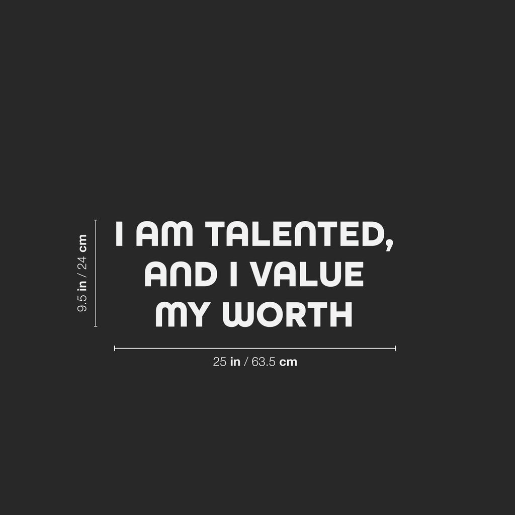 Vinyl Wall Art Decal - I Am Talented And I Value My Worth - 9. Trendy Positive Self Esteem Quote Sticker For Home School Classroom Office Goals Motivating Decor