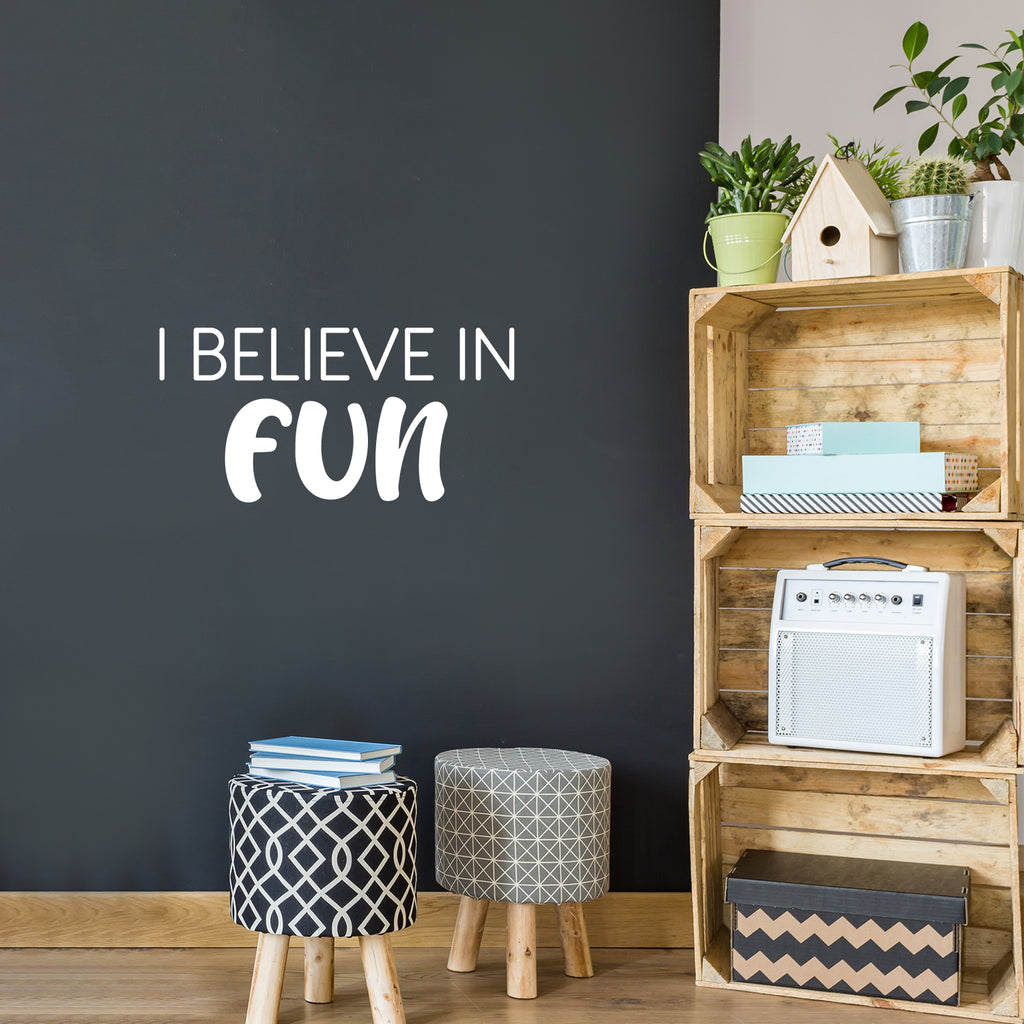 Vinyl Wall Art Decal - I Believe In Fun - Trendy Cool Inspiring Good Vibes Quote Sticker For Home Kids Room Playroom Nursery Daycare Kindergarten Classroom Decor