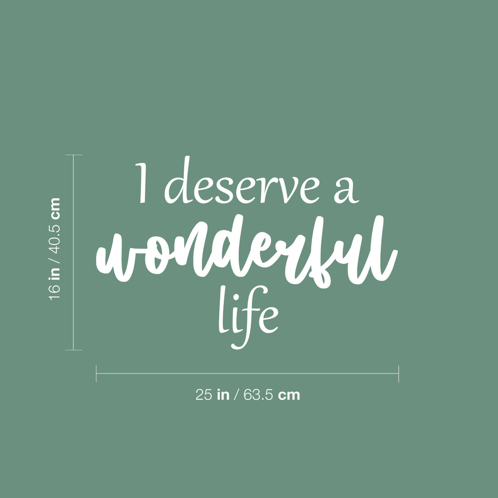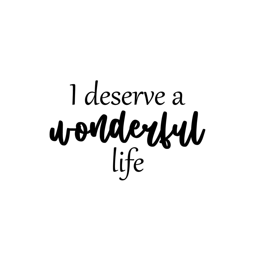 This awesome decal quote "I Deserve A Wonderful Life"; is the perfect touch for your home or coffee shop. Use it for your living room; apartment; dorm room or anywhere you want to bring some extra cute decoration. It's a vinyl sticker that is easy to put on any smooth and dry surface. Our modern designs don't just brighten up the room; but brighten up the day. Using top of the line vinyl across all of our production allows us to be the leaders in quality and design.