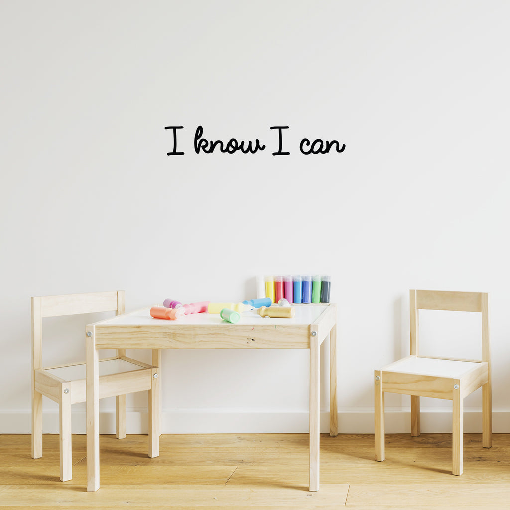This awesome motivating decal quote "I Know I Can"; is the perfect touch for your home or school. Use it for your living room; playroom; kids room or anywhere you want to bring some extra cute decoration. It's a vinyl sticker that is easy to put on any smooth and dry surface. Our modern designs don't just brighten up the room; but brighten up the day. Using top of the line vinyl across all of our production allows us to be the leaders in quality and design.