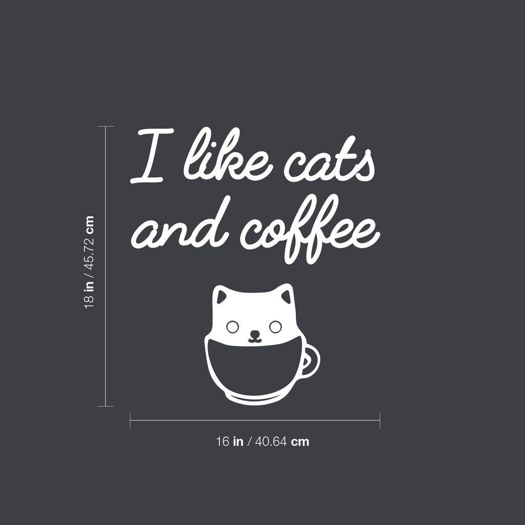 Vinyl Wall Art Decal - I Like Cats And Coffee - Cat Shape Modern Inspirational Funny Cafe Quote Sticker For Coffee Shop Bedroom Office kitchenette Home Kitchen Decor