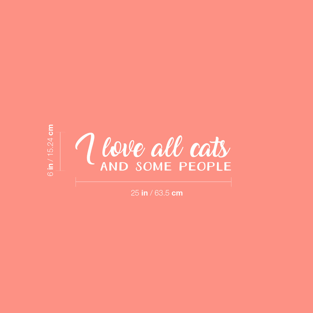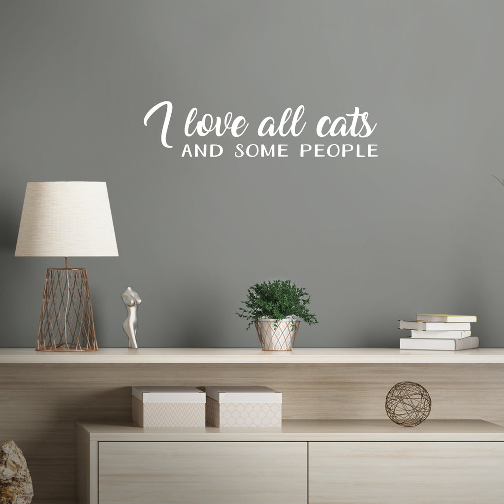 This awesome cute inspirational & fun design decal shape "I Love All Cats And Some People"; is the perfect touch for your home or business. Use it for your living room; office; storefront or anywhere you want to bring some extra cute decoration. It's a vinyl sticker that is easy to put on any smooth and dry surface. Our modern designs don't just brighten up the room; but brighten up the day. Using top of the line vinyl across all of our production allows us to be the leaders in quality and design.