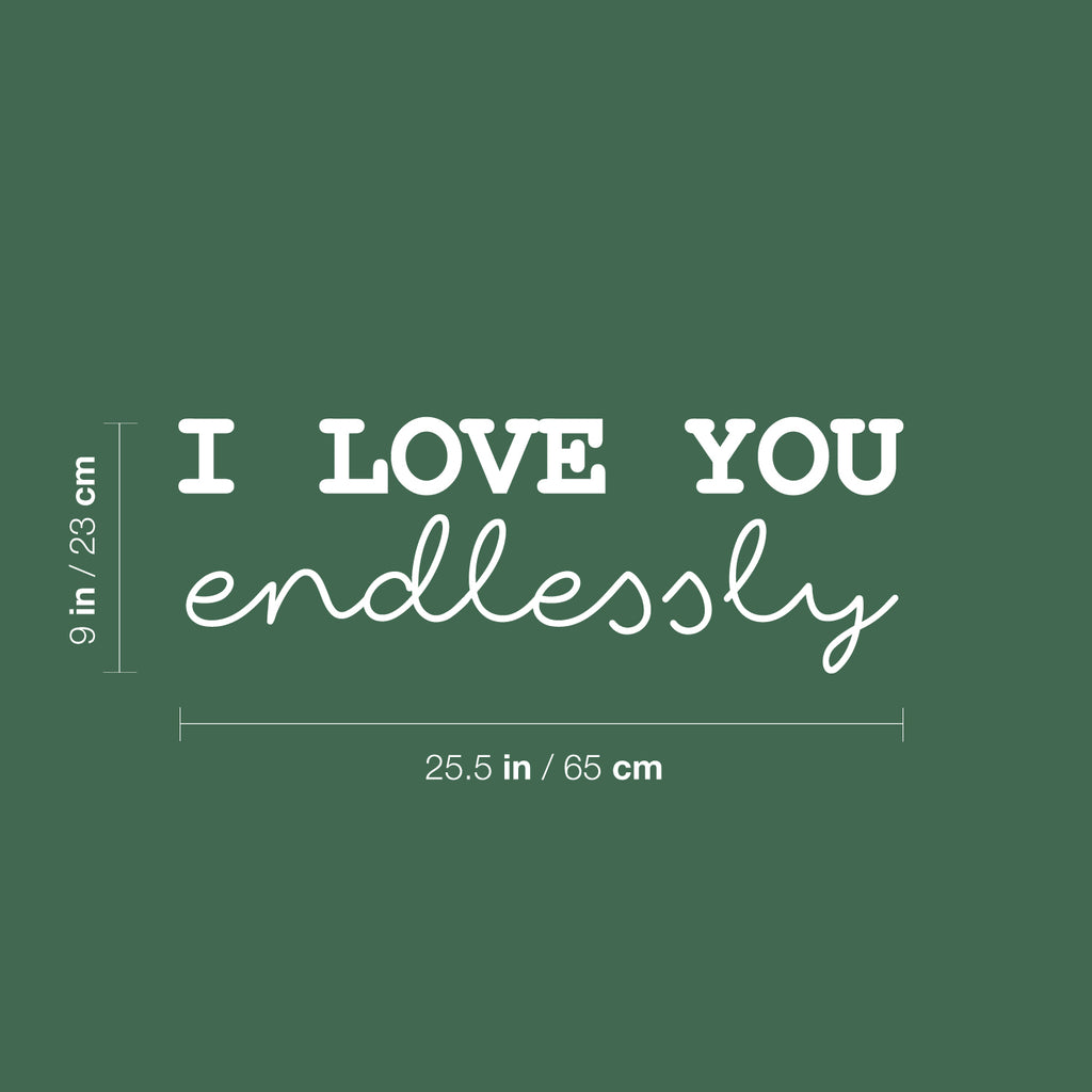 This awesome cute decal quote "I Love You Endlessly"; is the perfect touch for your home. Use it for your living room; playroom; kids room or anywhere you want to bring some extra cute decoration. It's a vinyl sticker that is easy to put on any smooth and dry surface. Our modern designs don't just brighten up the room; but brighten up the day. Using top of the line vinyl across all of our production allows us to be the leaders in quality and design.