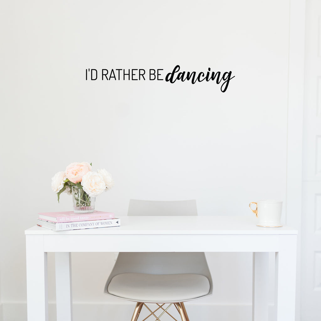 This cute motivational & positive decal quote "I'd Rather De Dancing"; is the perfect touch for your home or office. Use it for your bedroom; gym; living room or anywhere you want to bring some extra positive decoration. It's a vinyl sticker that is easy to put on any smooth and dry surface. Our modern designs don't just brighten up the room; but brighten up the day. Using top of the line vinyl across all of our production allows us to be the leaders in quality and design.