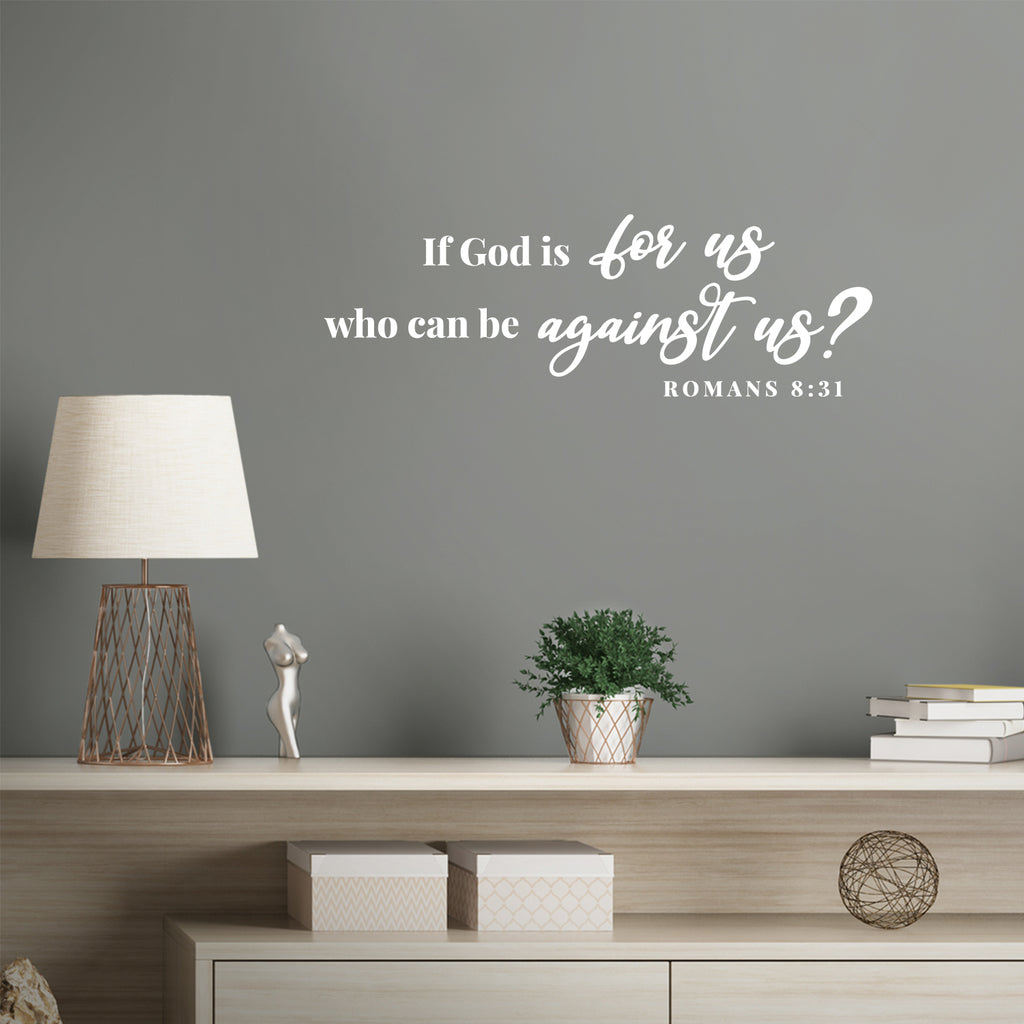 This awesome spiritual & inspiring decal quote "If God Is For Us Who Can Be Against Us - Romans 8:31"; is the perfect touch for your home. Use it for your office; living room or anywhere you want to bring some extra cute decoration. It's a vinyl sticker that is easy to put on any smooth and dry surface. Our modern designs don't just brighten up the room; but brighten up the day. Using top of the line vinyl across all of our production allows us to be the leaders in quality and design.