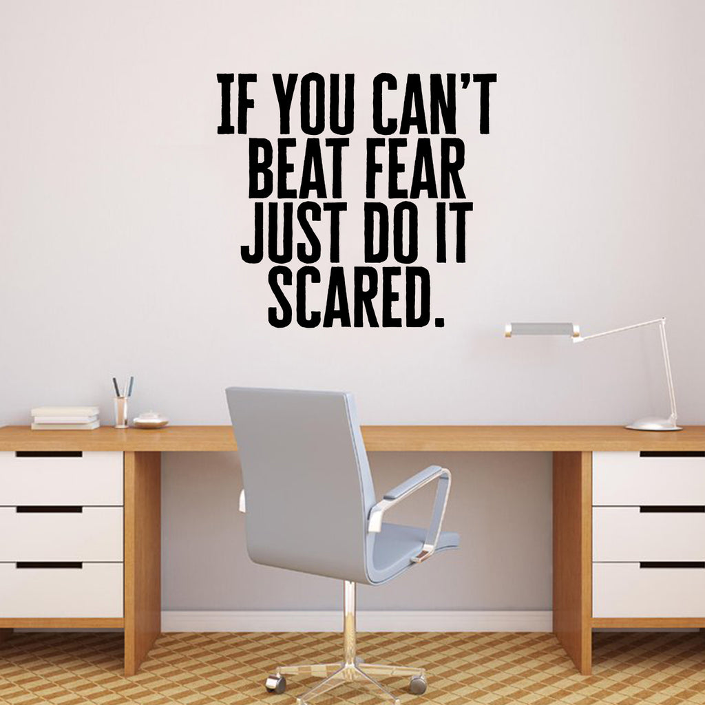This motivating "If You Can’t Beat Fear Just Do It Scared." life quotes wall art decal is inspiring and the perfect touch for both indoor and outdoor decoration. It’s a vinyl sticker that is easy to put on almost any smooth surface and really brings a room together adding the perfect touch of decoration. This motivational vinyl decal quote gives you that confidence you need to keep pushing through your fears and know that the only limits there are are the ones in your head - you never know until you try! Our inspiring quotes don’t just brighten up the room; but brighten up the day. Using top of the line vinyl across all of our production allows us to be the leaders in quality and design.The easiest surfaces for Vinyl to stick on is Windows Walls Mirrors Dorm Rooms Cars Lockers Flat and Smooth Surfaces Tables and Glass CabinetsAll vinyl packages come with easy to follow instructions further explaining just how simple it is to apply vinyl on and off your surface of choice. Prior to applying the vinyl; be sure the surface is clean and oil free for best results. This vinyl is waterproof and is not permanent so it’s not only easy to use but easy to remove as well. In general; vinyl lettering is one of the latest and greatest trends in home decoration. Because our products are high quality; they give the illusion of painted wall art without the mess; cost; or time. What are you waiting for? Let’s get crafty!