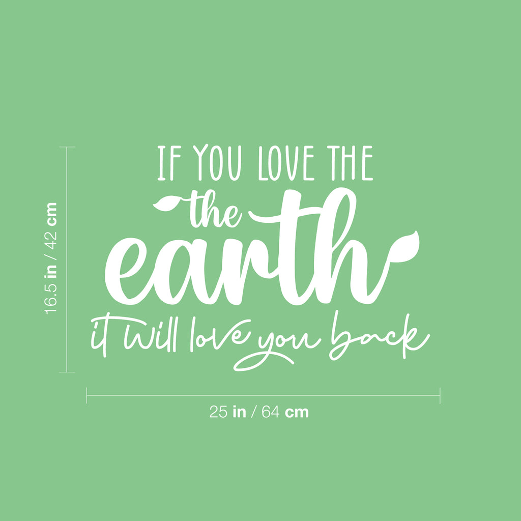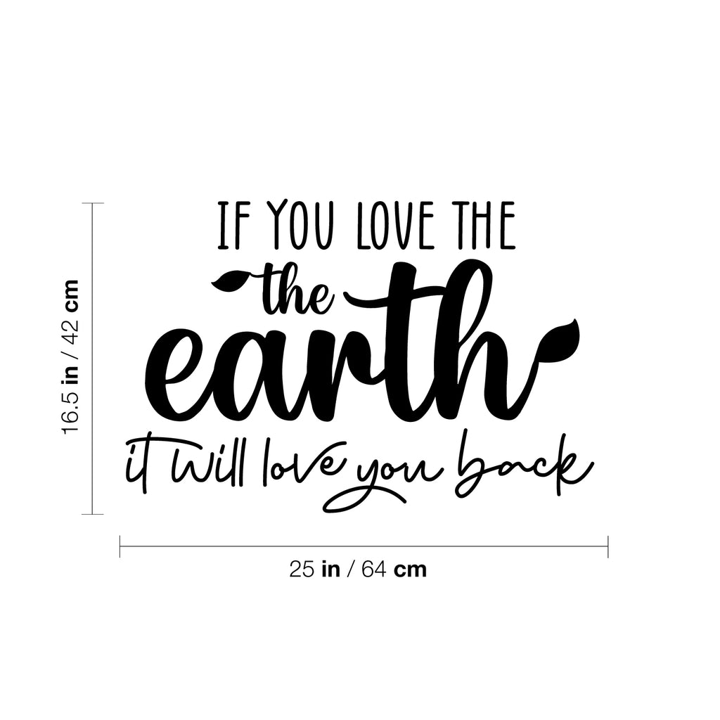 This awesome decal quote "If You Love The Earth It Will Love You Back"; is the perfect touch for your home. Use it for your home; salon; classroom or anywhere you want to bring some extra decoration. It's a vinyl sticker that is easy to put on any smooth and dry surface. Our modern designs don't just brighten up the room; but brighten up the day. Using top of the line vinyl across all of our production allows us to be the leaders in quality and design.