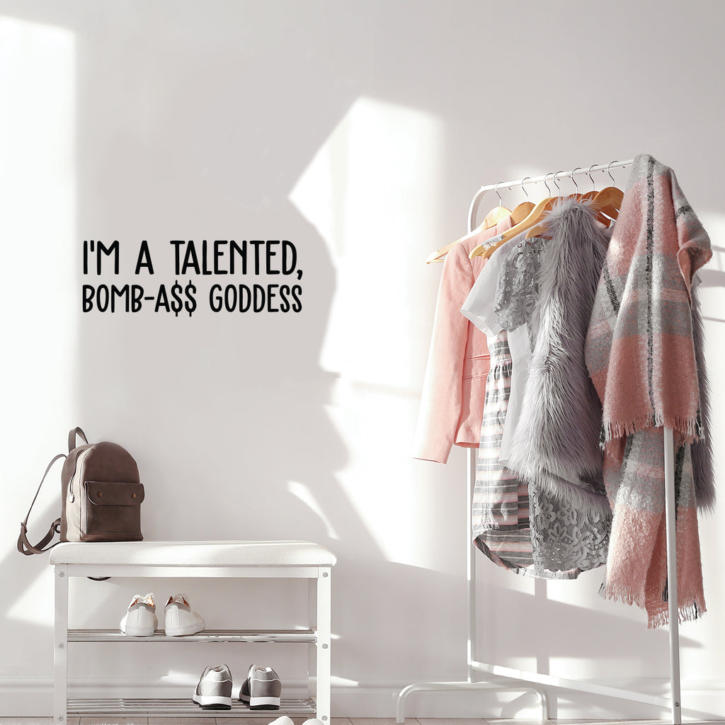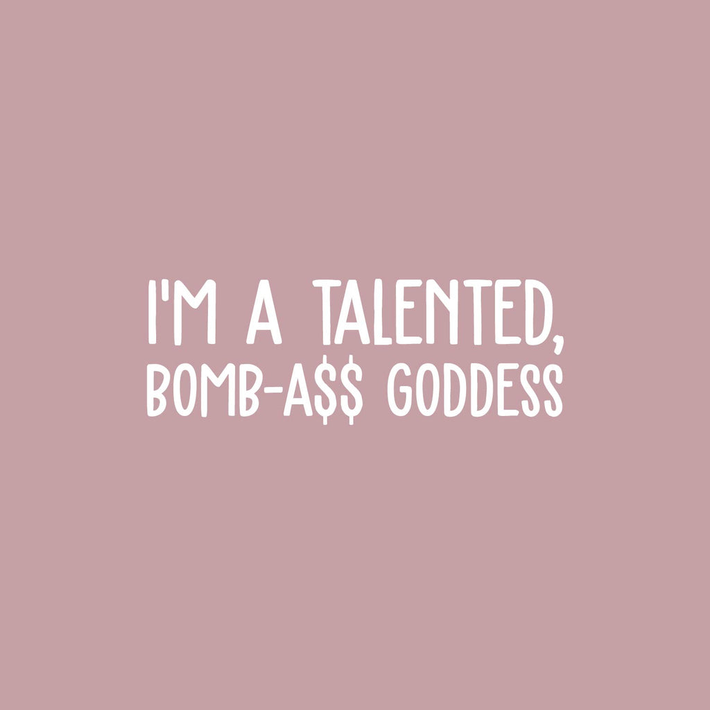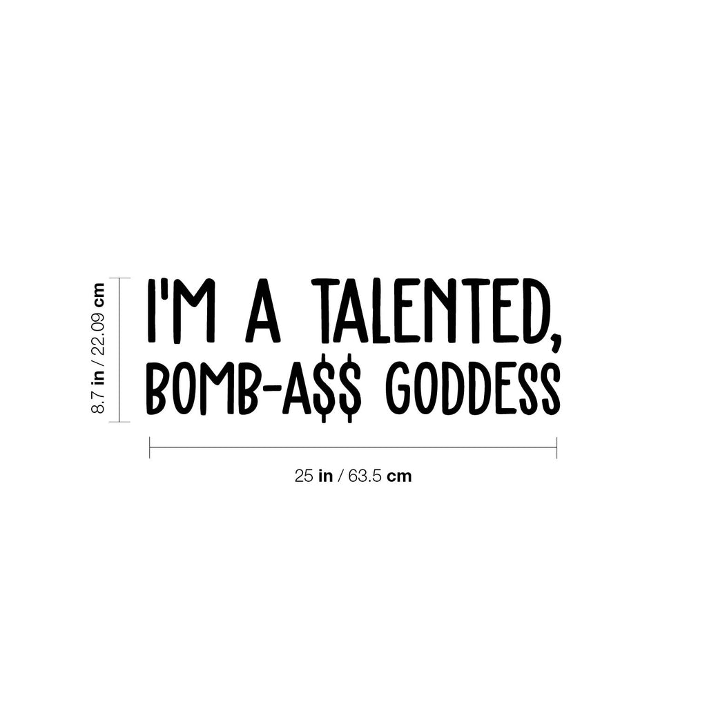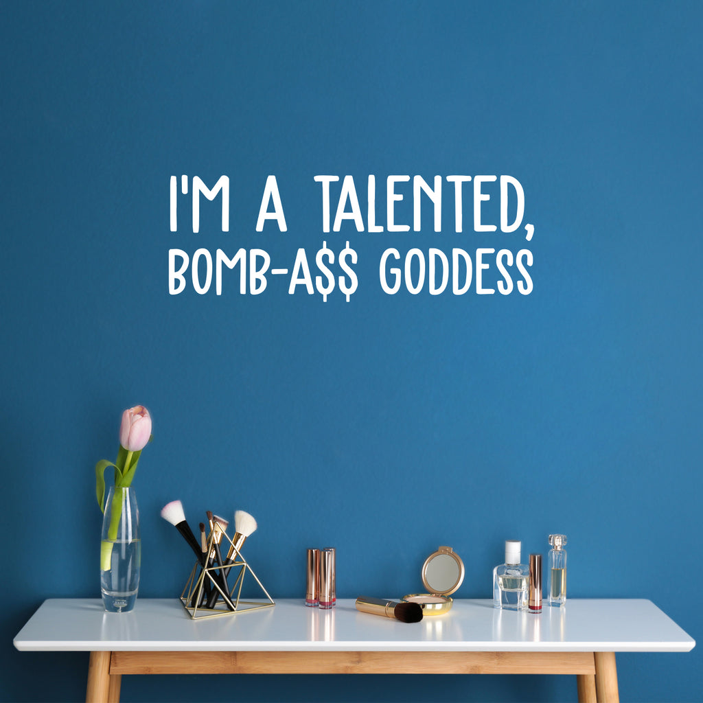 This empowering decal quote "I'm A Talented; Bomb-A$$ Goddess"; is the perfect touch for your home or work. Use it for your dorm room; home office or anywhere you want to bring some extra decoration. It's a vinyl sticker that is easy to put on any smooth and dry surface. Our modern designs don't just brighten up the room; but brighten up the day. Using top of the line vinyl across all of our production allows us to be the leaders in quality and design.
