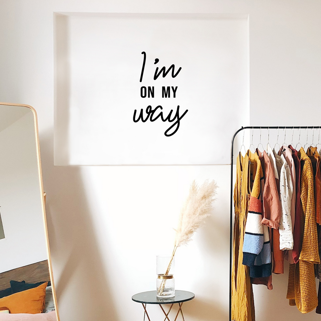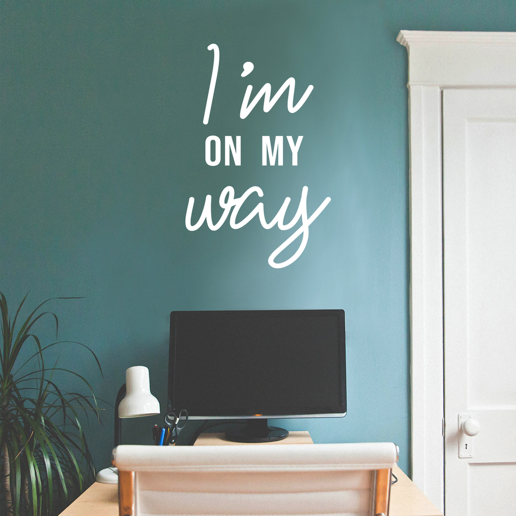 This awesome optimistic & motivational decal quote "I'm On My Way"; is the perfect touch for your gym or office. Use it for your living room; school; workout space or anywhere you want to bring some extra positive decoration. It's a vinyl sticker that is easy to put on any smooth and dry surface. Our modern designs don't just brighten up the room; but brighten up the day. Using top of the line vinyl across all of our production allows us to be the leaders in quality and design.