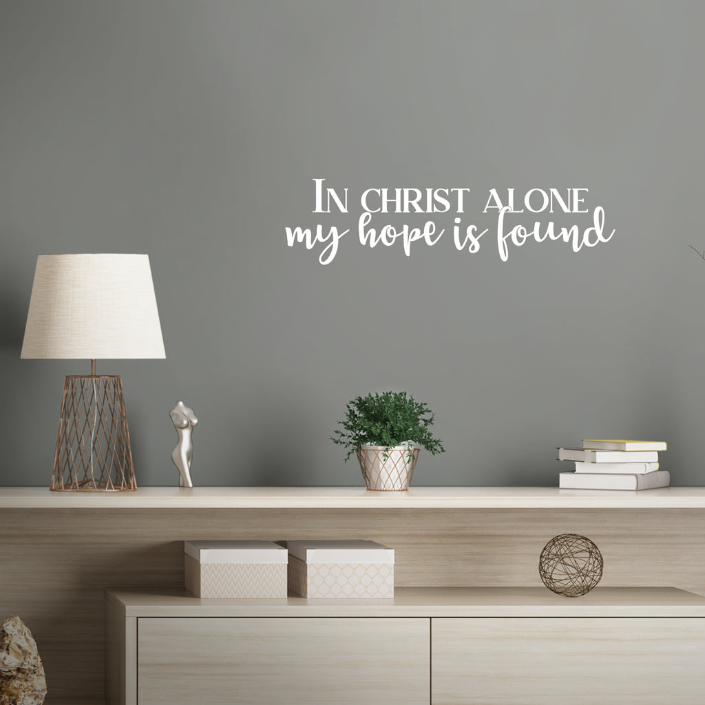 This decal quote "In Christ Alone My Hope Is Found"; is the perfect touch for your home or work. Use it for your dorm room; home office or anywhere you want to bring some extra decoration. It's a vinyl sticker that is easy to put on any smooth and dry surface. Our modern designs don't just brighten up the room; but brighten up the day. Using top of the line vinyl across all of our production allows us to be the leaders in quality and design.