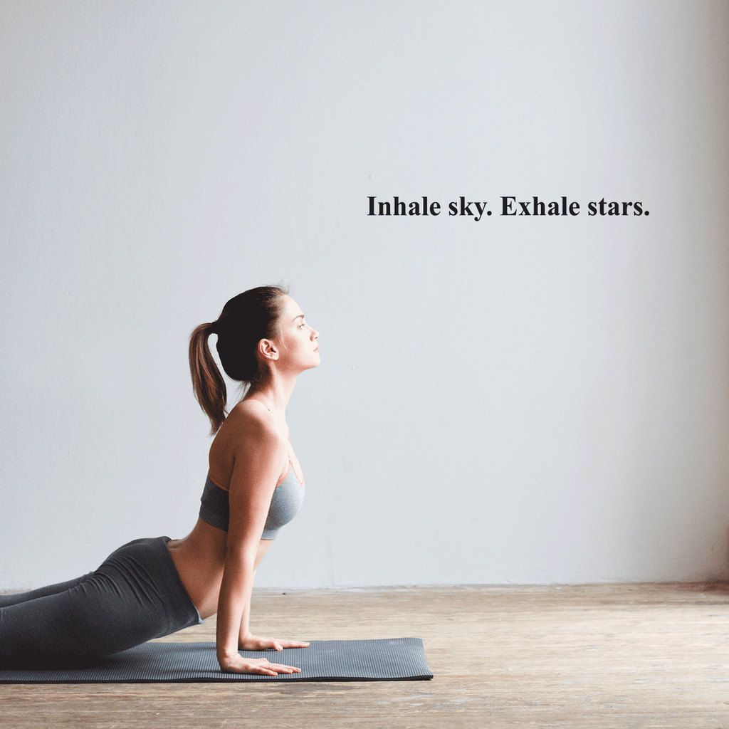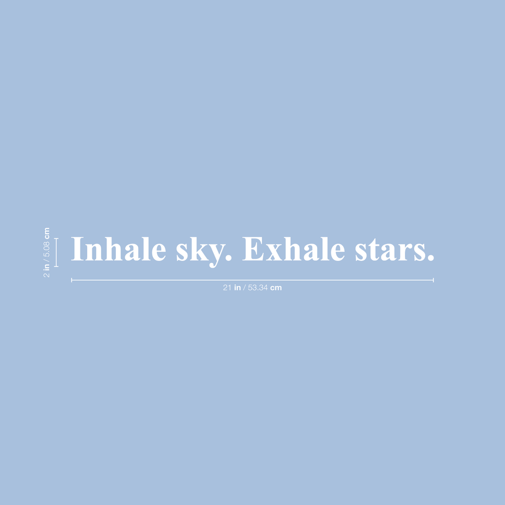 This awesome optimistic & motivational decal quote "Inhale Sky Exhale Stars'"; is the perfect touch for your home or work. Use it for your bedroom; closet; living room or anywhere you want to bring some extra positive decoration. It's a vinyl sticker that is easy to put on any smooth and dry surface. Our modern designs don't just brighten up the room; but brighten up the day. Using top of the line vinyl across all of our production allows us to be the leaders in quality and design.
