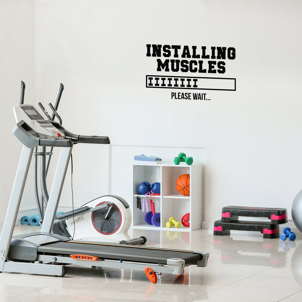 This awesome positive decal quote "Installing Muscles Please Wait"; is the perfect touch for your home. Use it for your bedroom; home gym or anywhere you want to bring some extra positive decoration. It's a vinyl sticker that is easy to put on any smooth and dry surface. Our modern designs don't just brighten up the room; but brighten up the day. Using top of the line vinyl across all of our production allows us to be the leaders in quality and design.
