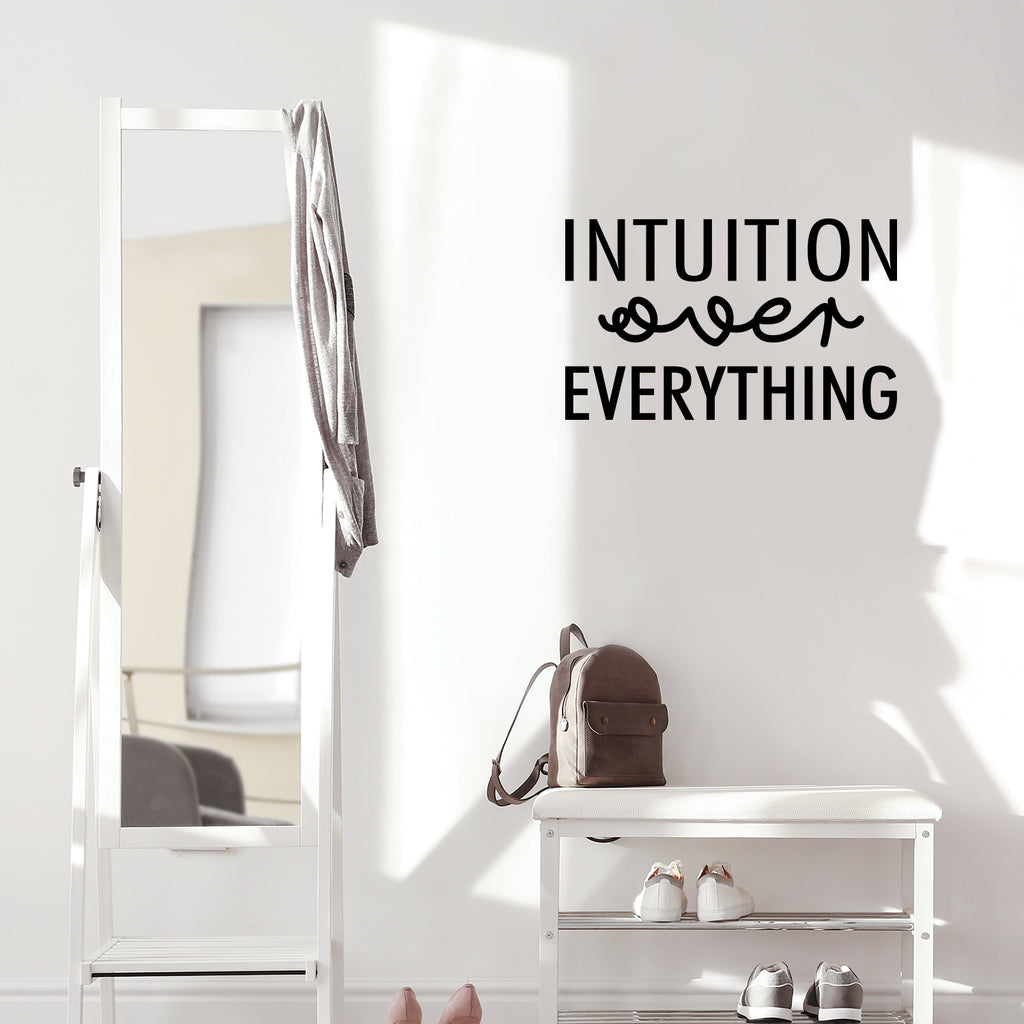 Vinyl Wall Art Decal - Intuition Over Everything - Inspiring Optimistic Vibes Quote Sticker For Home Bedroom Closet Living Room Office School Coffee Shop Decor