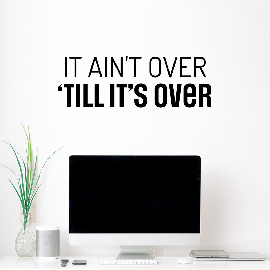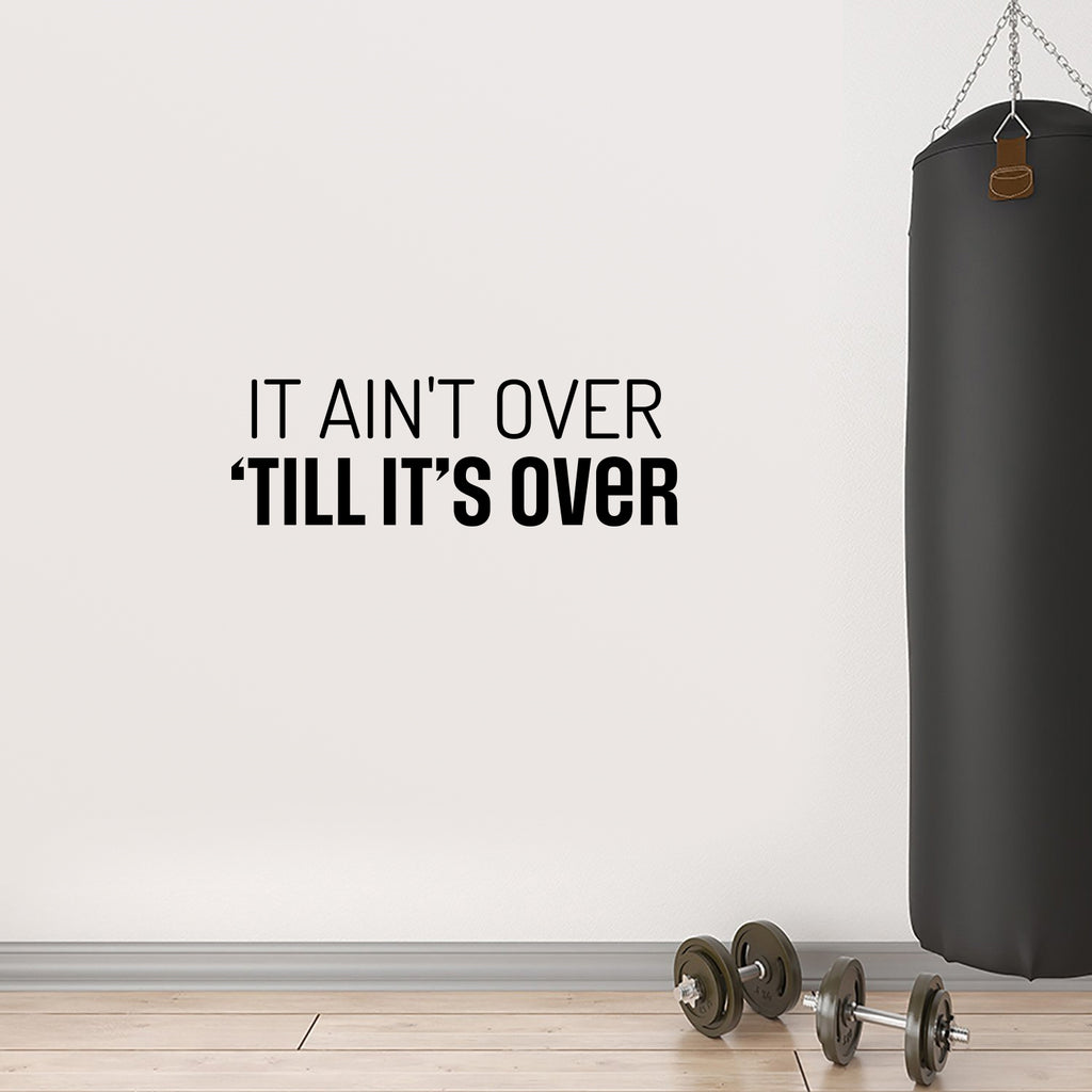 This awesome inspiring decal quote "It Ain't Over 'Till It's Over"; is the perfect touch for your fitness center or home. Use it for your wellness clinic; healthy center; storefront or anywhere you want to bring some extra positive decoration. It's a vinyl sticker that is easy to put on any smooth and dry surface. Our modern designs don't just brighten up the room; but brighten up the day. Using top of the line vinyl across all of our production allows us to be the leaders in quality and design.