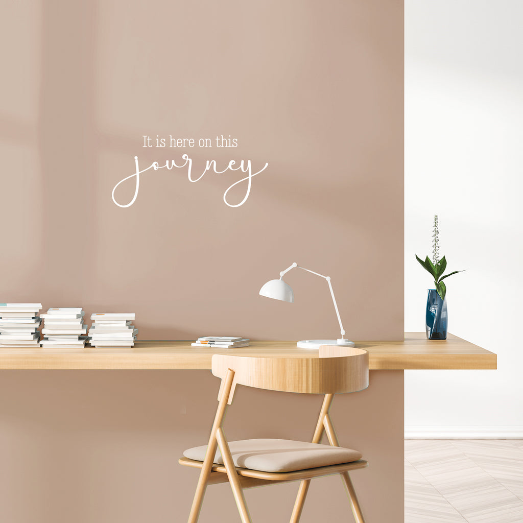 This awesome optimistic & motivational decal quote "It Is Here On This Journey"; is the perfect touch for your gym or office. Use it for your living room; school; workout space or anywhere you want to bring some extra positive decoration. It's a vinyl sticker that is easy to put on any smooth and dry surface. Our modern designs don't just brighten up the room; but brighten up the day. Using top of the line vinyl across all of our production allows us to be the leaders in quality and design.