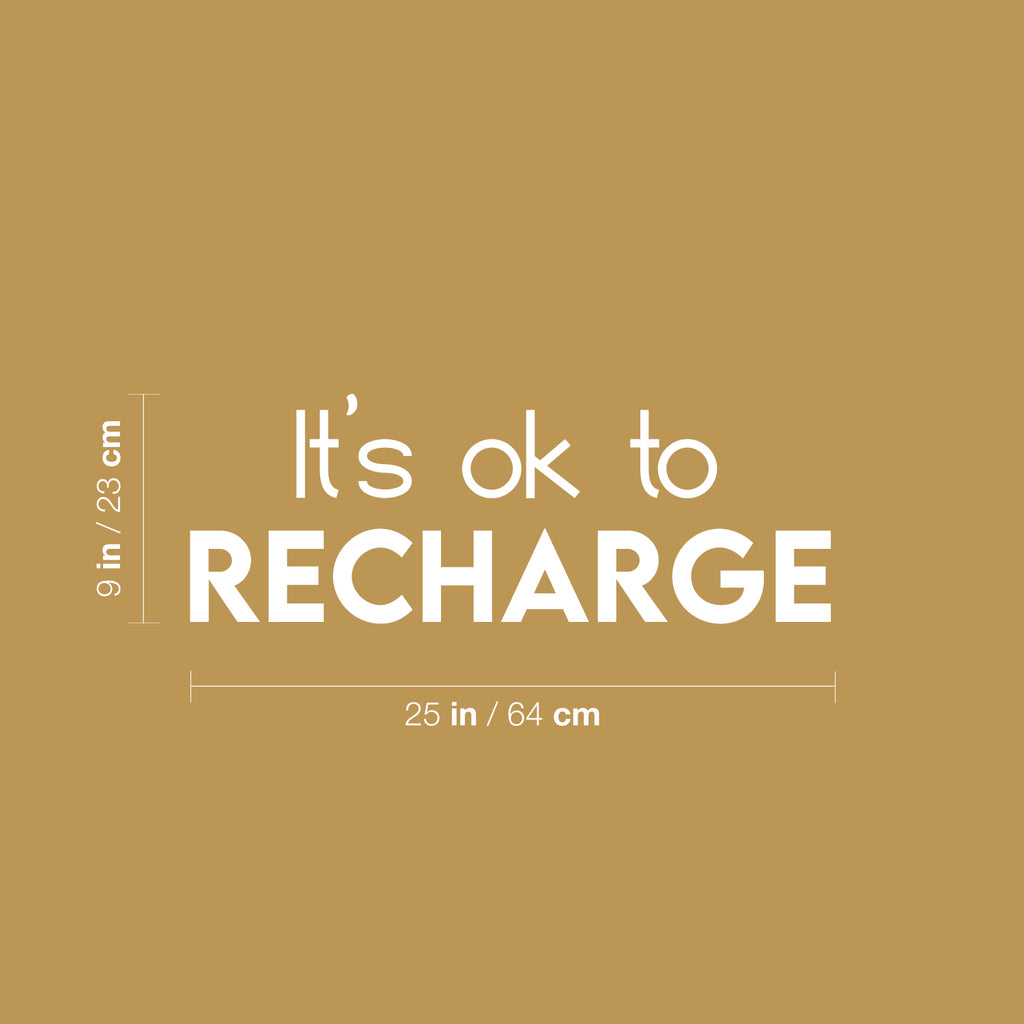 This optimistic & inspirational decal quote "It's Ok To Recharge"; is the perfect touch for your school or office. Use it for your living room; playroom; kids room or anywhere you want to bring some extra positive decoration. It's a vinyl sticker that is easy to put on any smooth and dry surface. Our modern designs don't just brighten up the room; but brighten up the day. Using top of the line vinyl across all of our production allows us to be the leaders in quality and design.