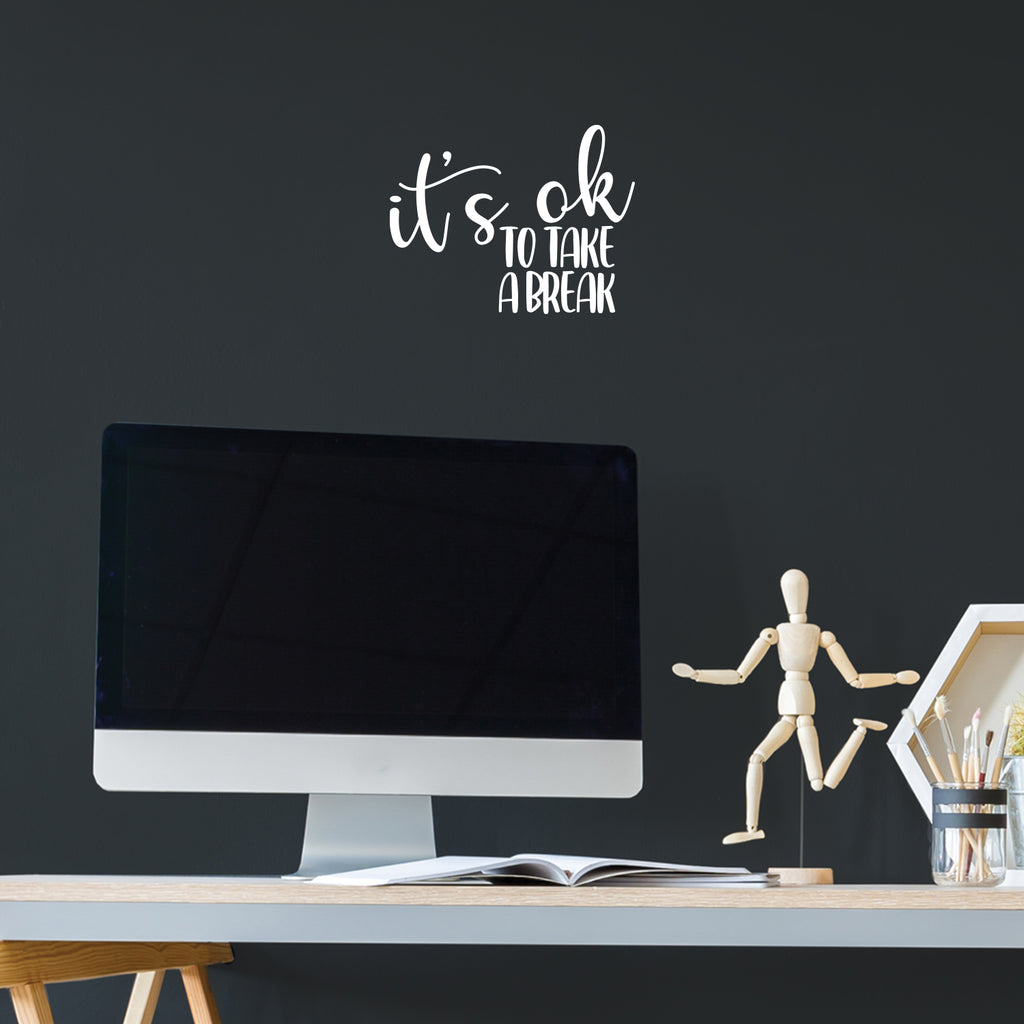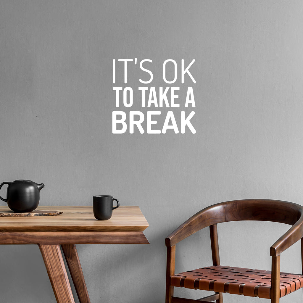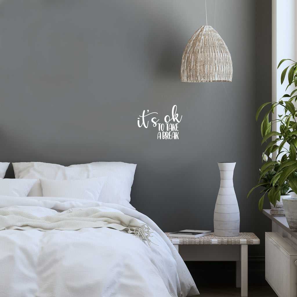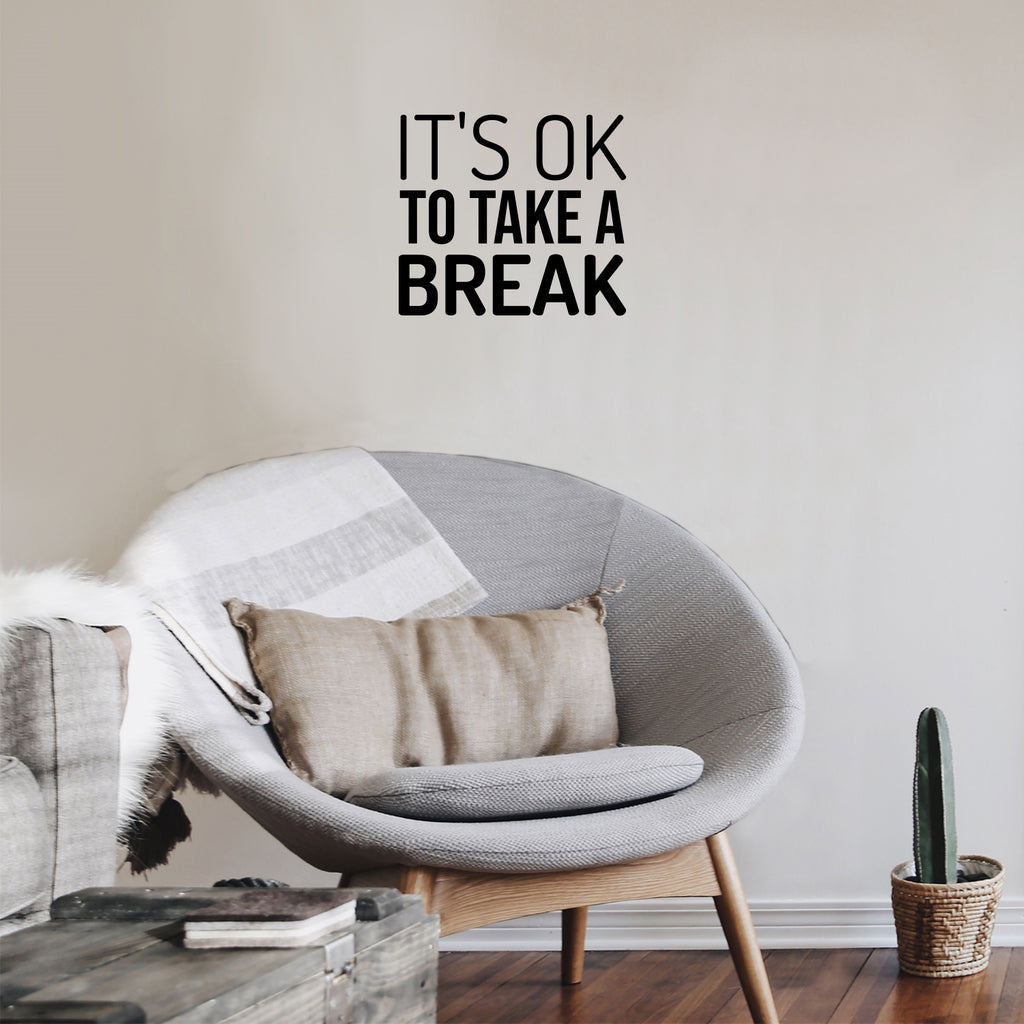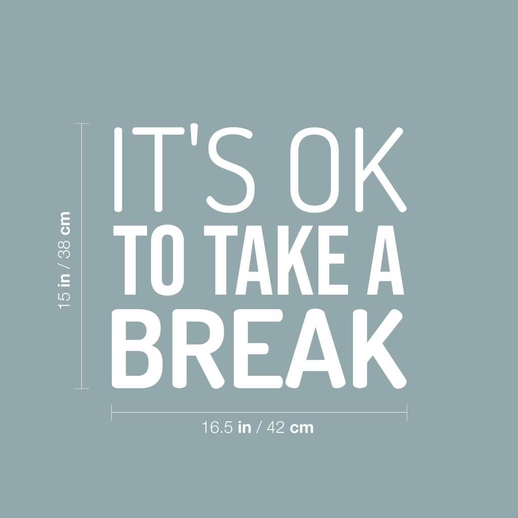 This awesome positive decal quote "It's Ok To Take A Break"; is the perfect touch for your home or school. Use it for your bedroom; living room; storefront or anywhere you want to bring some extra cute decoration. It's a vinyl sticker that is easy to put on any smooth and dry surface. Our modern designs don't just brighten up the room; but brighten up the day. Using top of the line vinyl across all of our production allows us to be the leaders in quality and design.
