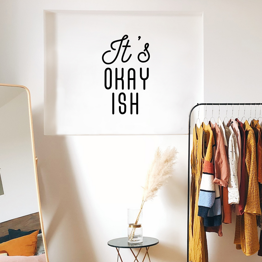 This cute girly & optimistic decal quote "It's Okayish"; is the perfect touch for your home or office. Use it for your bedroom; girls room or anywhere you want to bring some extra cute decoration. It's a vinyl sticker that is easy to put on any smooth and dry surface. Our modern designs don't just brighten up the room; but brighten up the day. Using top of the line vinyl across all of our production allows us to be the leaders in quality and design.