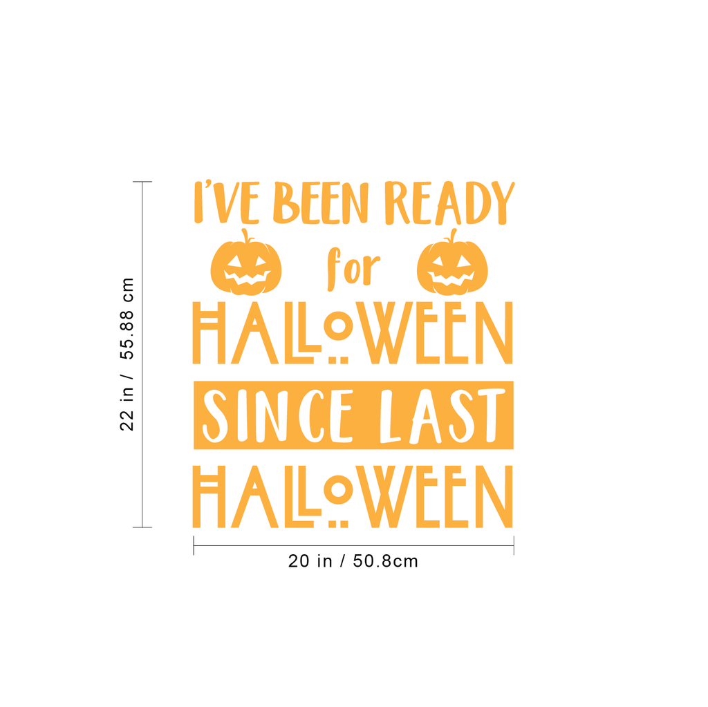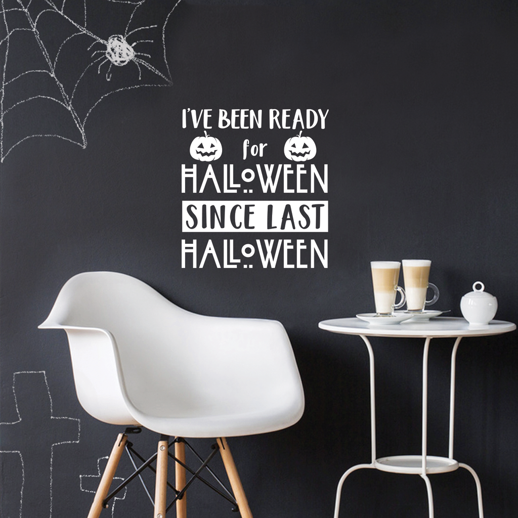 This funny & cute decal quote "I've Been Ready For Halloween Since Last Halloween"; is the perfect touch for your home or work. Use it for your office; living room or anywhere you want to bring some extra halloween decoration. It's a vinyl sticker that is easy to put on any smooth and dry surface. Our modern designs don't just brighten up the room; but brighten up the day. Using top of the line vinyl across all of our production allows us to be the leaders in quality and design.