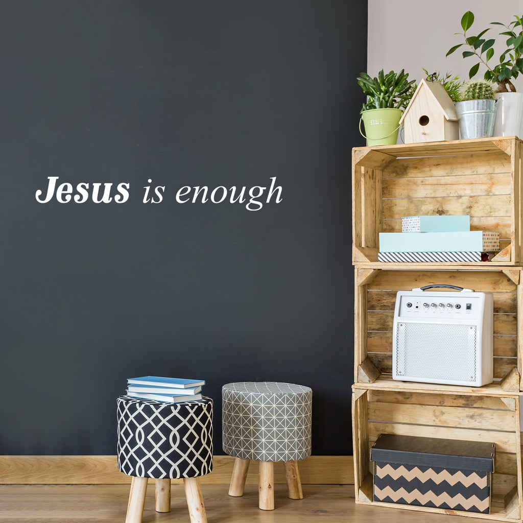 This awesome spiritual decal quote "Jesus Is Enough"; is the perfect touch for your home. Use it for your kids room; living room or anywhere you want to bring some extra decoration. It's a vinyl sticker that is easy to put on any smooth and dry surface. Our modern designs don't just brighten up the room; but brighten up the day. Using top of the line vinyl across all of our production allows us to be the leaders in quality and design.