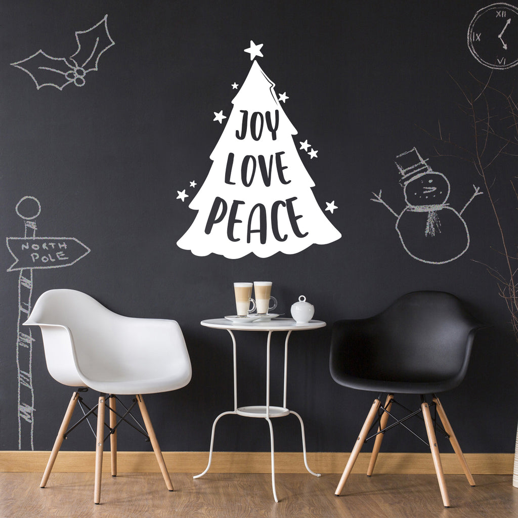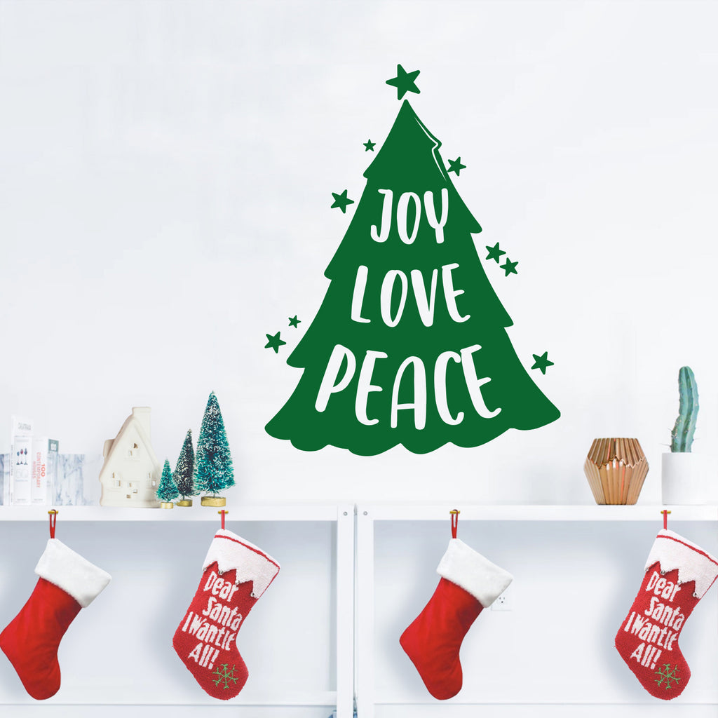 This holiday season decal "Joy Love Peace"; is the perfect touch for your home or store. Use it for your home or anywhere you want to bring some extra decoration. It's a vinyl sticker that is easy to put on any smooth and dry surface. Our modern designs don't just brighten up the room; but brighten up the day. Using top of the line vinyl across all of our production allows us to be the leaders in quality and design.