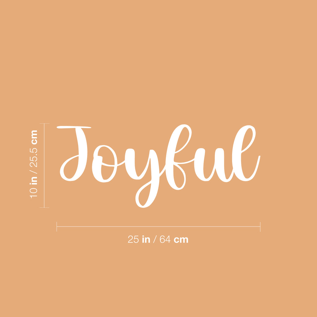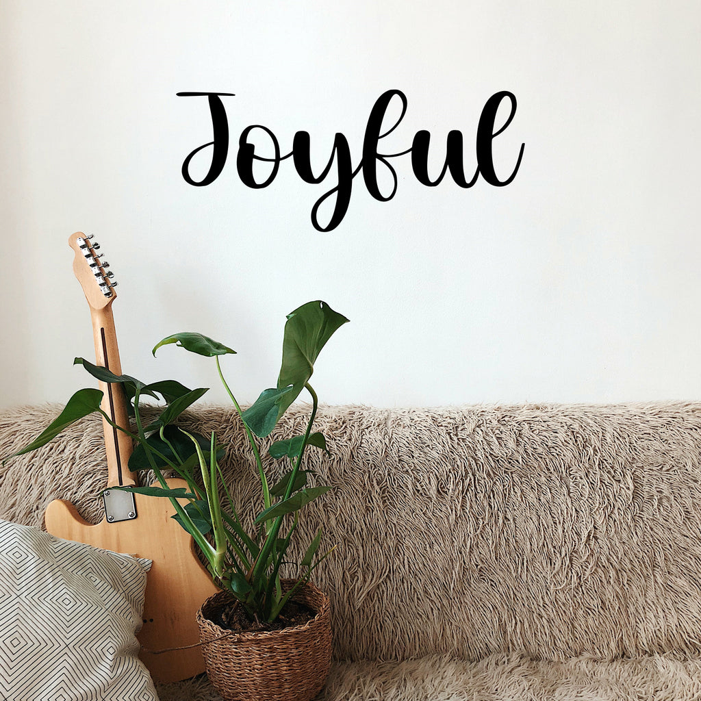 This great decal quote "Joyful"; is the perfect touch for your home. Use it for your kids room; living room or anywhere you want to bring some extra decoration. It's a vinyl sticker that is easy to put on any smooth and dry surface. Our modern designs don't just brighten up the room; but brighten up the day. Using top of the line vinyl across all of our production allows us to be the leaders in quality and design.
