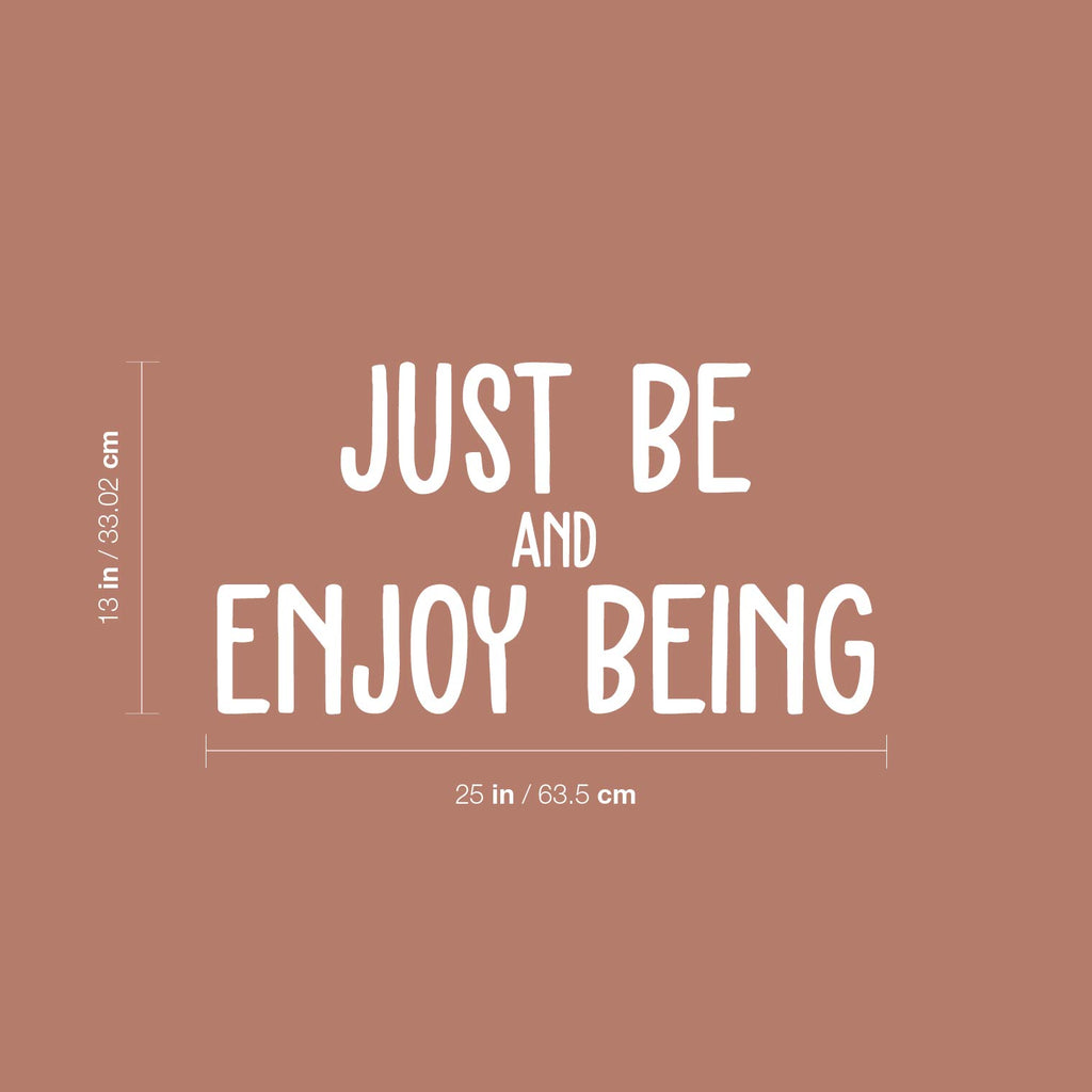 This great decal quote "Just Be And Enjoy Being"; is the perfect touch for your home. Use it for your kids room; living room or anywhere you want to bring some extra decoration. It's a vinyl sticker that is easy to put on any smooth and dry surface. Our modern designs don't just brighten up the room; but brighten up the day. Using top of the line vinyl across all of our production allows us to be the leaders in quality and design.