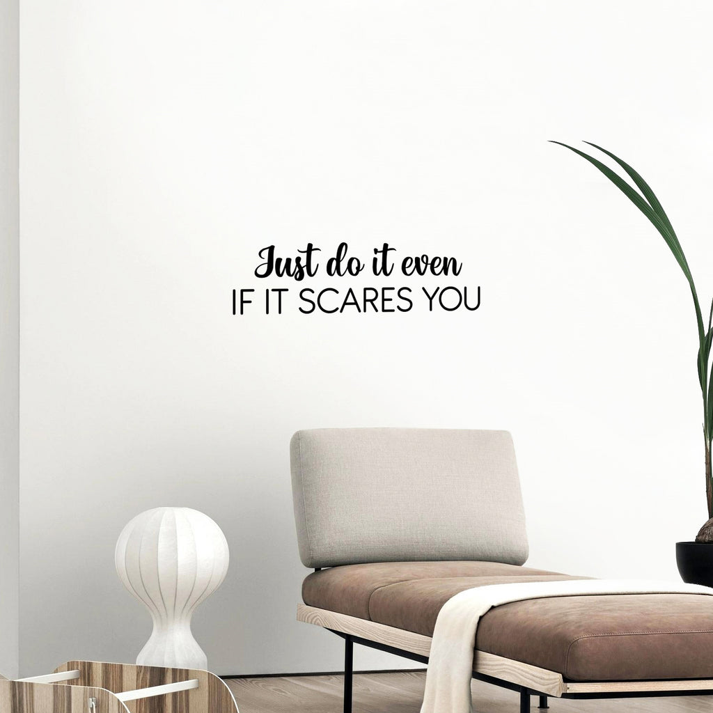 This awesome inspirational decal quote "Just Do It Even If It Scares You"; is the perfect touch for your home or classroom. Use it for your home school; living room; office or anywhere you want to bring some extra decoration. It's a vinyl sticker that is easy to put on any smooth and dry surface. Our modern designs don't just brighten up the room; but brighten up the day. Using top of the line vinyl across all of our production allows us to be the leaders in quality and design.