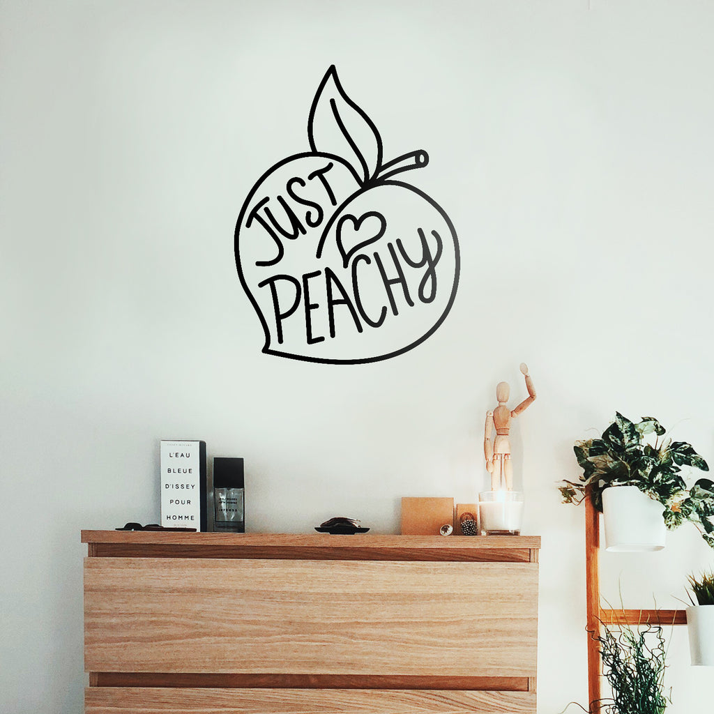 This trendy "Just Peachy" life quotes wall art decal is modern and the perfect touch for both indoor and outdoor decoration. It’s a vinyl sticker that is easy to put on almost any smooth surface and really brings a room together adding the perfect touch of decoration. This vinyl decal is perfect for a fun; positive vibe to your personal space. Our inspiring quotes don’t just brighten up the room; but brighten up the day. Using top of the line vinyl across all of our production allows us to be the leaders in quality and design.The easiest surfaces for Vinyl to stick on is Windows Walls Mirrors Dorm Rooms Cars Lockers Flat and Smooth Surfaces Tables and Glass CabinetsAll vinyl packages come with easy to follow instructions further explaining just how simple it is to apply vinyl on and off your surface of choice. Prior to applying the vinyl; be sure the surface is clean and oil free for best results. This vinyl is waterproof and is not permanent so it’s not only easy to use but easy to remove as well. In general; vinyl lettering is one of the latest and greatest trends in home decoration. Because our products are high quality; they give the illusion of painted wall art without the mess; cost; or time. What are you waiting for? Let’s get crafty!