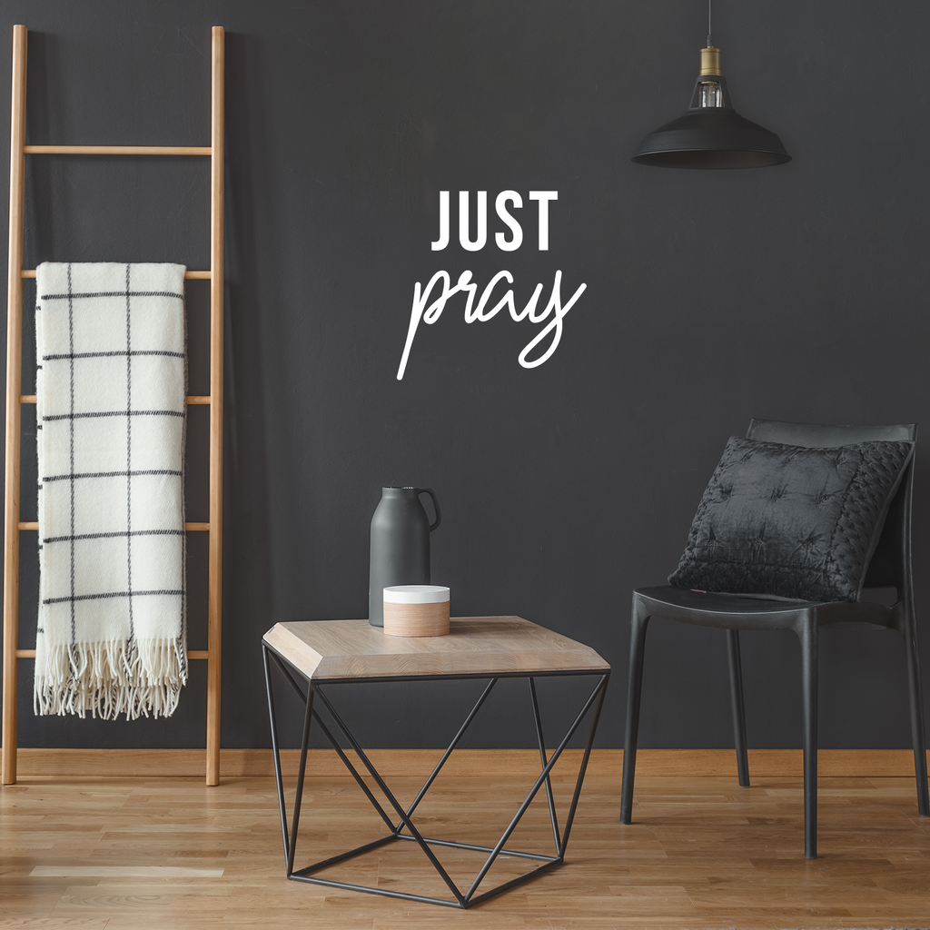 This optimistic & inspirational decal quote "Just Pray"; is the perfect touch for your home or office. Use it for your living room; playroom; dining room or anywhere you want to bring some extra cute decoration. It's a vinyl sticker that is easy to put on any smooth and dry surface. Our modern designs don't just brighten up the room; but brighten up the day. Using top of the line vinyl across all of our production allows us to be the leaders in quality and design.