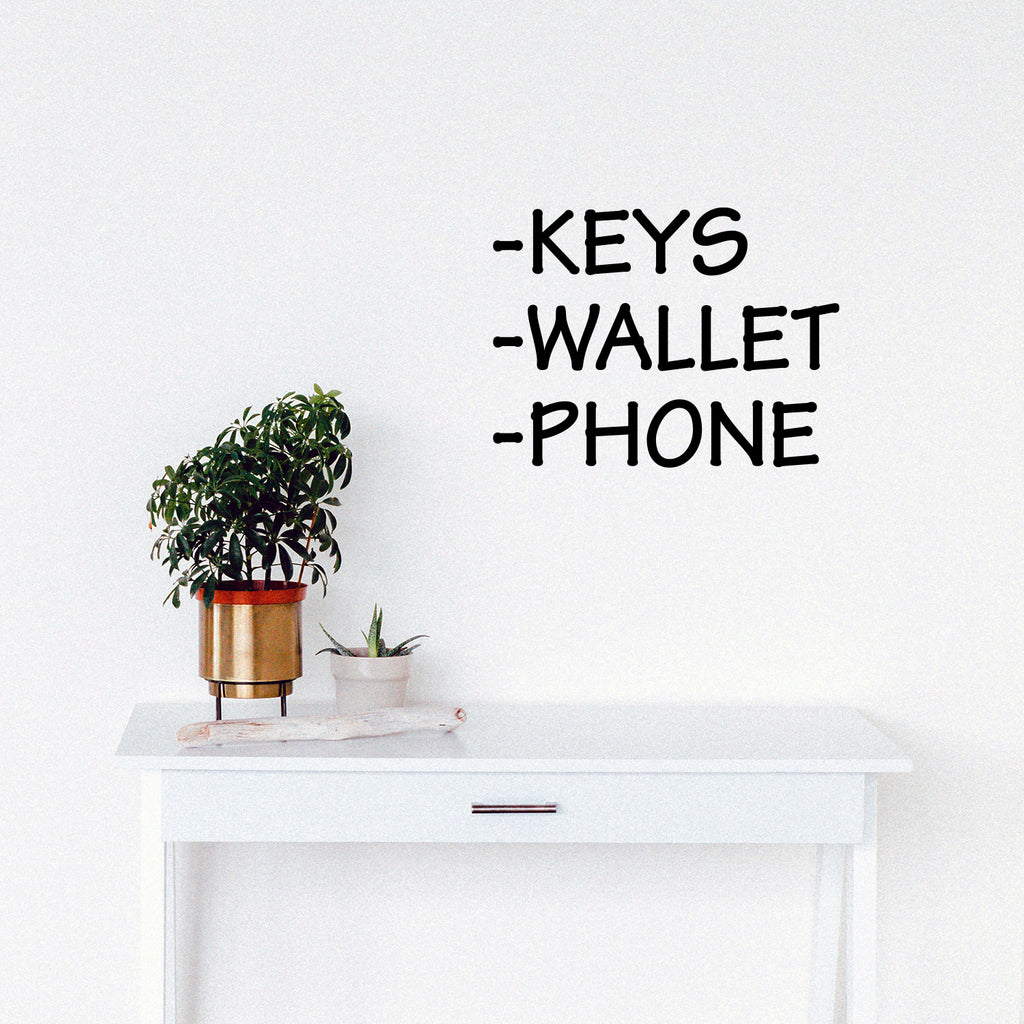 This cute decal quote "Keys Wallet Phone"; is the perfect touch for your home or apartment. Use it for your living room; house or anywhere you want to bring some extra cute decoration. It's a vinyl sticker that is easy to put on any smooth and dry surface. Our modern designs don't just brighten up the room; but brighten up the day. Using top of the line vinyl across all of our production allows us to be the leaders in quality and design.