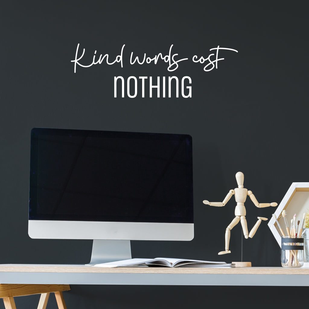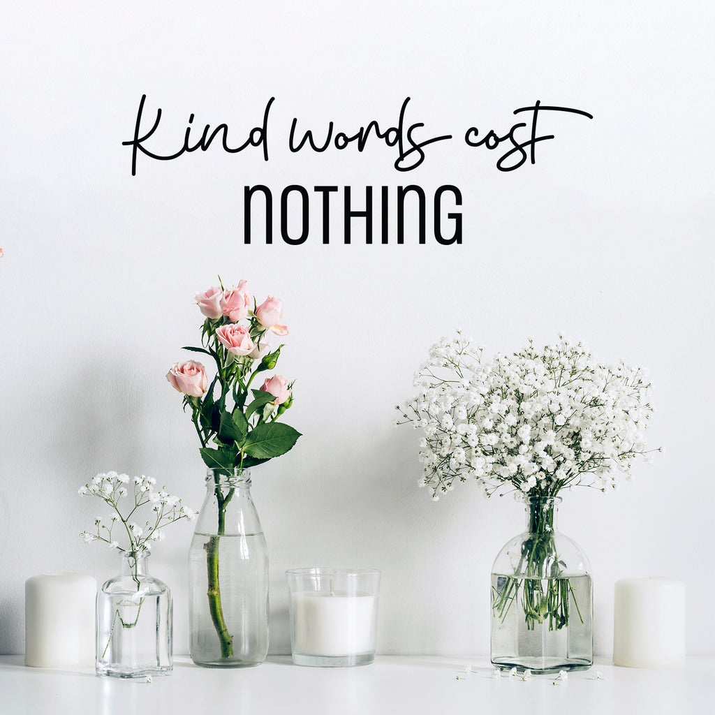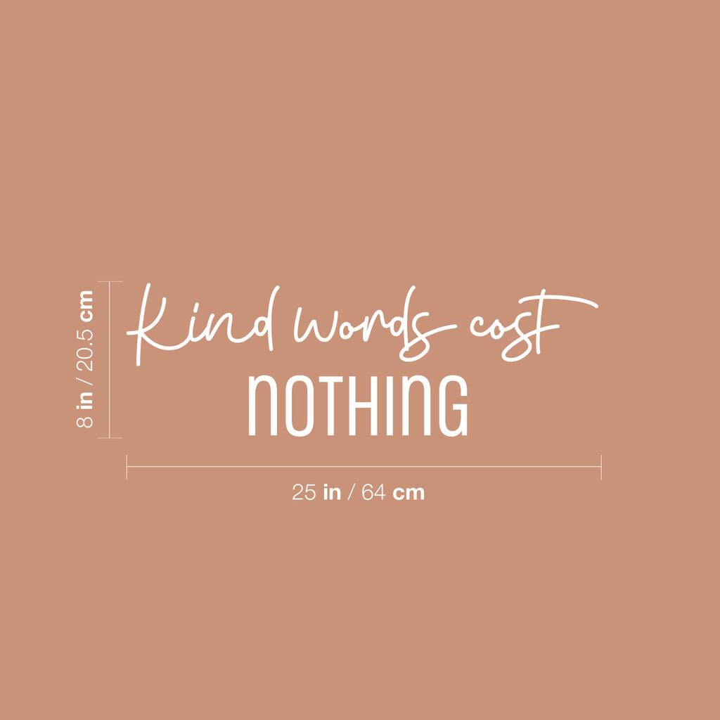 This awesome lovely decal quote "Kind Words Cost Nothing" is the perfect touch for your home. Use it for your nursery; playroom; kids room or anywhere you want to bring some extra cute decoration. It's a vinyl sticker that is easy to put on any smooth and dry surface. Our modern designs don't just brighten up the room; but brighten up the day. Using top of the line vinyl across all of our production allows us to be the leaders in quality and design.