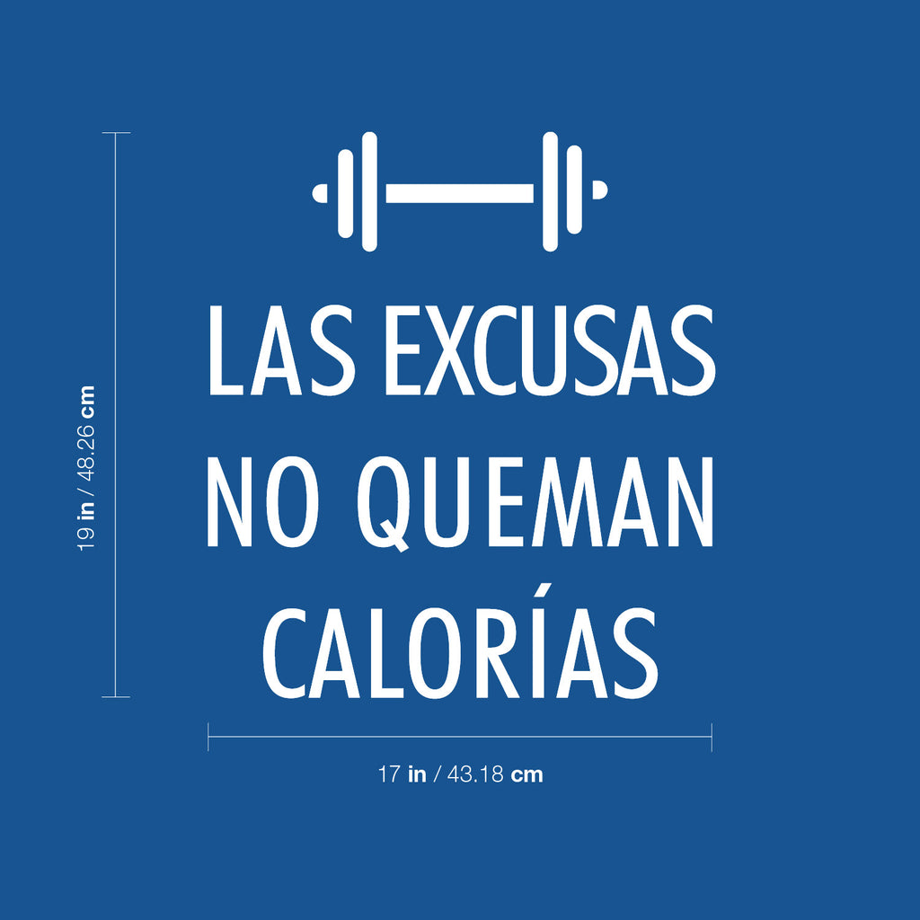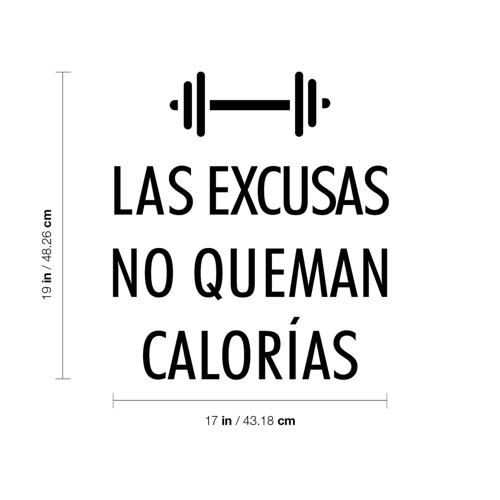 This awesome positive & inspirational decal quote "Las Excusas No Queman Calorias / Excuses Don't Burn Calories"; is the perfect touch for your home or office. Use it for your business; coffee shop; bathroom or anywhere you want to bring some extra positive decoration. It's a vinyl sticker that is easy to put on any smooth and dry surface. Our modern designs don't just brighten up the room; but brighten up the day. Using top of the line vinyl across all of our production allows us to be the leaders in quality and design.