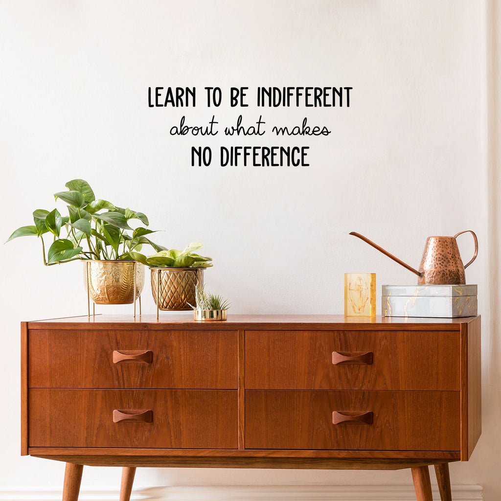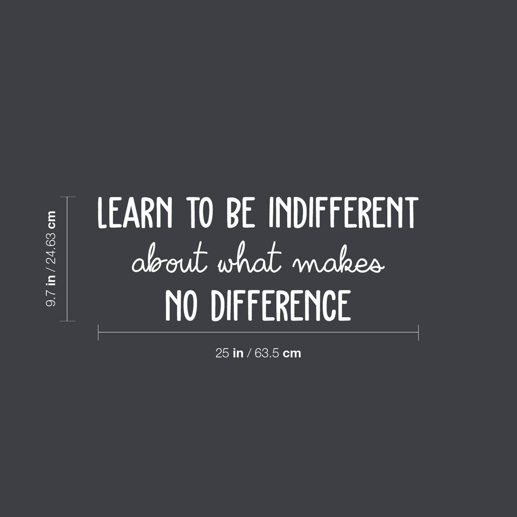 This awesome inspirational decal quote "Learn To Be Indifferent About What Makes No Difference" is the perfect touch for your home. Use it for your office; school; gym or anywhere you want to bring some extra cute decoration. It's a vinyl sticker that is easy to put on any smooth and dry surface. Our modern designs don't just brighten up the room; but brighten up the day. Using top of the line vinyl across all of our production allows us to be the leaders in quality and design.
