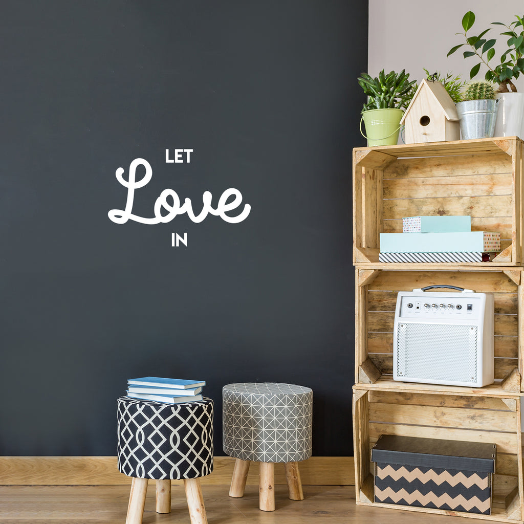 This awesome positive decal quote "Let Love In"; is the perfect touch for your home or work. Use it for your bedroom; playroom; living room or anywhere you want to bring some extra positive decoration. It's a vinyl sticker that is easy to put on any smooth and dry surface. Our modern designs don't just brighten up the room; but brighten up the day. Using top of the line vinyl across all of our production allows us to be the leaders in quality and design.