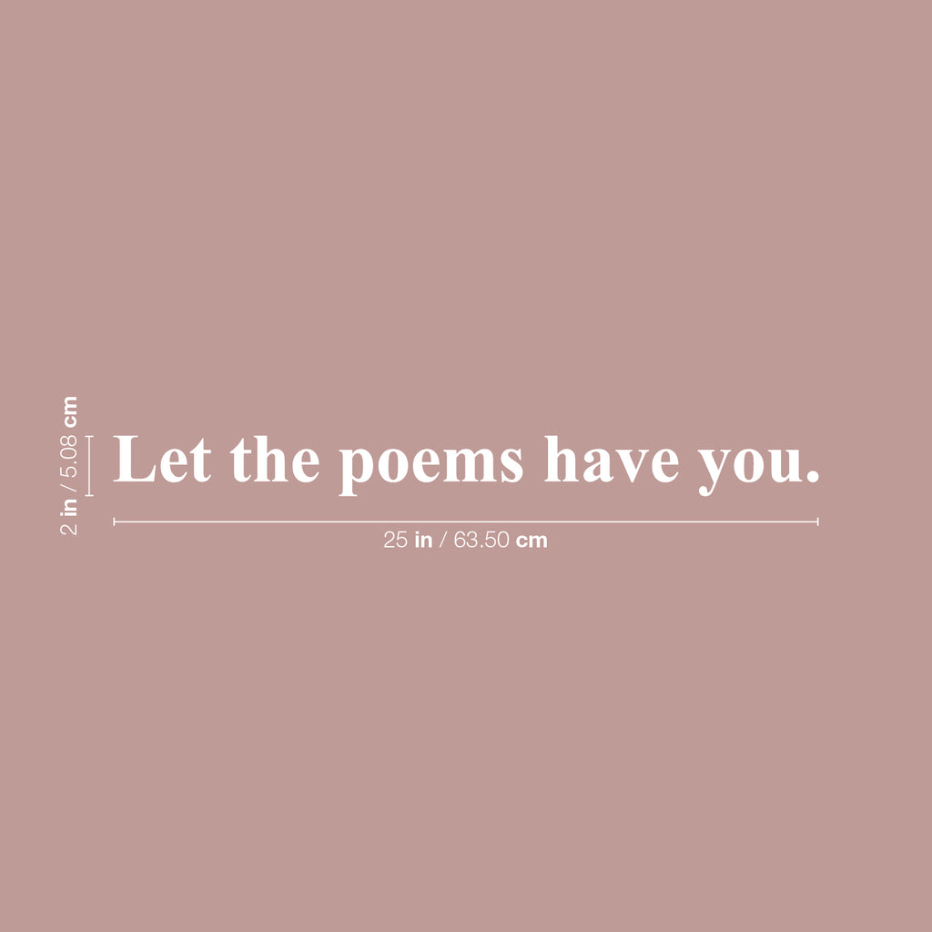 This great decal quote "Let The Poems Have You"; is the perfect touch for your home. Use it for your kids room; living room or anywhere you want to bring some extra decoration. It's a vinyl sticker that is easy to put on any smooth and dry surface. Our modern designs don't just brighten up the room; but brighten up the day. Using top of the line vinyl across all of our production allows us to be the leaders in quality and design.