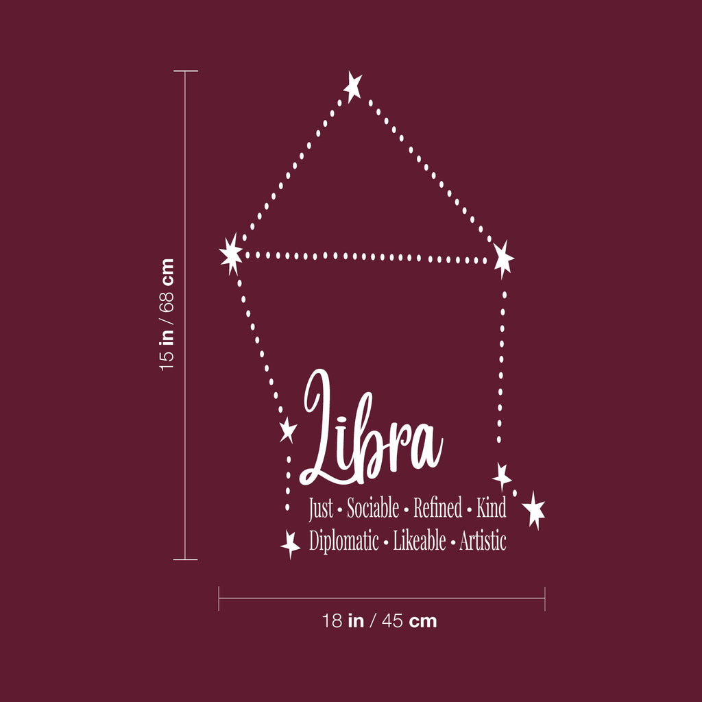 This inspirational decal quote "Libra"; is the perfect touch for your home or office. Use it for your home school; living room; office space or anywhere you want to bring some extra decoration. It's a vinyl sticker that is easy to put on any smooth and dry surface. Our modern designs don't just brighten up the room; but brighten up the day. Using top of the line vinyl across all of our production allows us to be the leaders in quality and design.