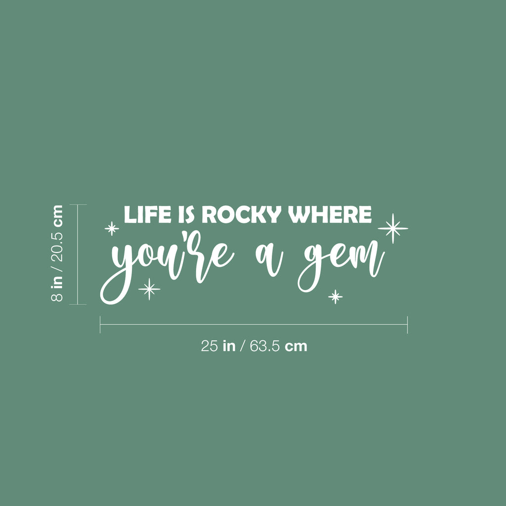 This great decal quote "Life Is Rocky Where You're A Gem"; is the perfect touch for your home. Use it for your makeup area; dorm room or anywhere you want to bring some extra decoration. It's a vinyl sticker that is easy to put on any smooth and dry surface. Our modern designs don't just brighten up the room; but brighten up the day. Using top of the line vinyl across all of our production allows us to be the leaders in quality and design.