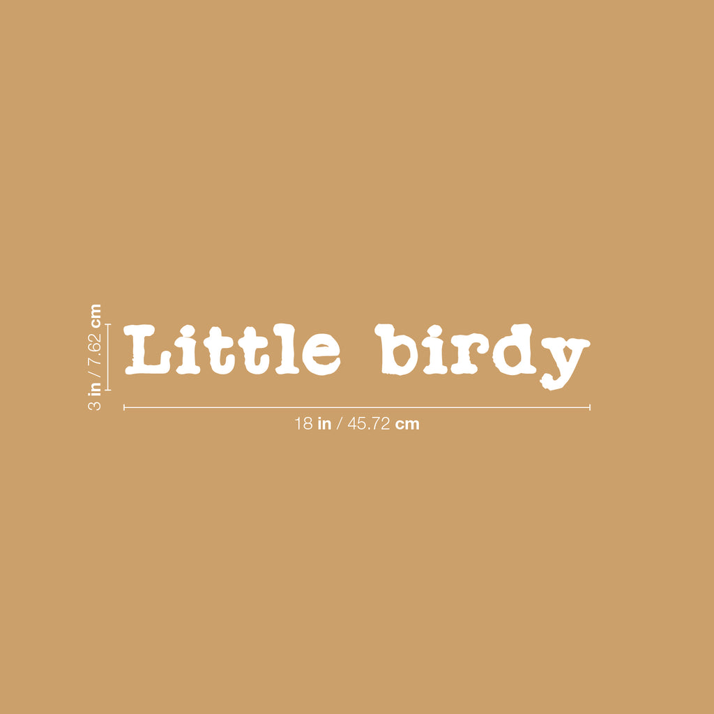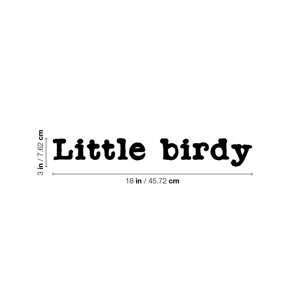 This great decal quote "Little Birdy"; is the perfect touch for your home. Use it for your kids room; living room or anywhere you want to bring some extra decoration. It's a vinyl sticker that is easy to put on any smooth and dry surface. Our modern designs don't just brighten up the room; but brighten up the day. Using top of the line vinyl across all of our production allows us to be the leaders in quality and design.