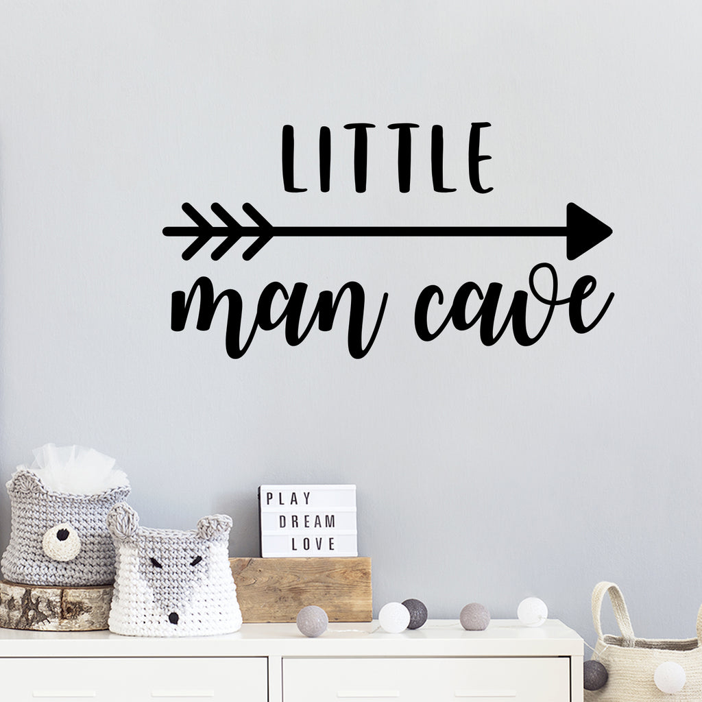 This awesome lovely decal quote "Little Man Cave" is the perfect touch for your home or school. Use it for your bedroom; living room; office or anywhere you want to bring some extra cute decoration. It's a vinyl sticker that is easy to put on any smooth and dry surface. Our modern designs don't just brighten up the room; but brighten up the day. Using top of the line vinyl across all of our production allows us to be the leaders in quality and design.