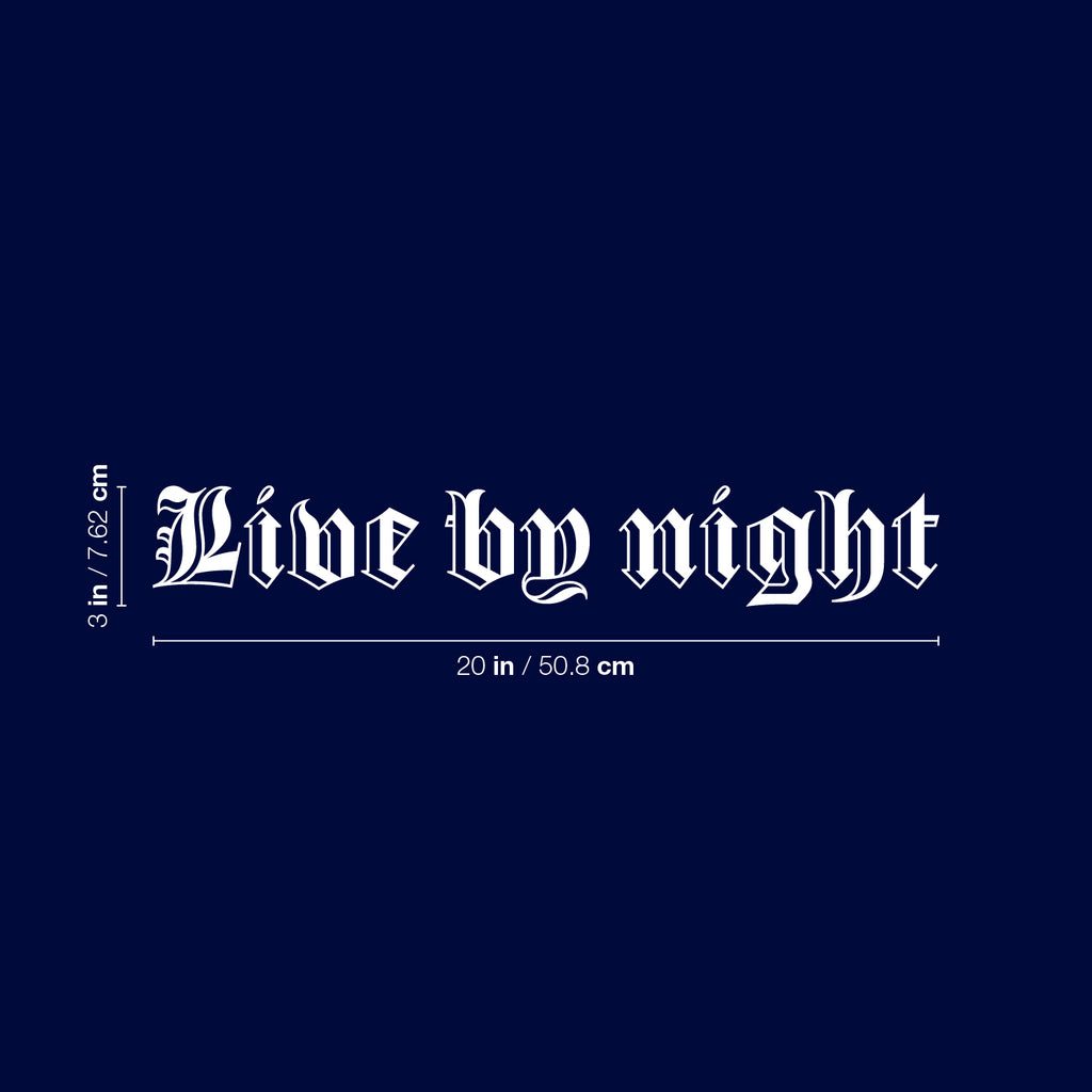 This awesome decal quote "Live By Night"; is the perfect touch for your home. Use it for your dorm room; living room or anywhere you want to bring some extra decoration. It's a vinyl sticker that is easy to put on any smooth and dry surface. Our modern designs don't just brighten up the room; but brighten up the day. Using top of the line vinyl across all of our production allows us to be the leaders in quality and design.