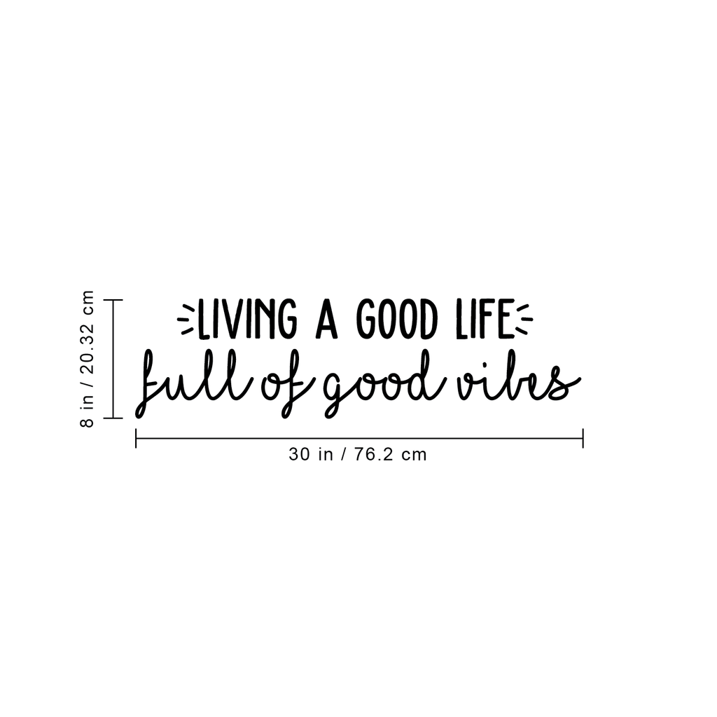 This awesome positive decal quote "Living A Good Life Full Of Good Vibes"; is the perfect touch for your home or office. Use it for your bedroom; closet; living room or anywhere you want to bring some extra positive decoration. It's a vinyl sticker that is easy to put on any smooth and dry surface. Our modern designs don't just brighten up the room; but brighten up the day. Using top of the line vinyl across all of our production allows us to be the leaders in quality and design.